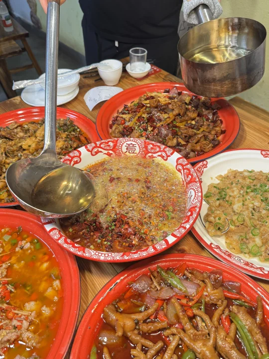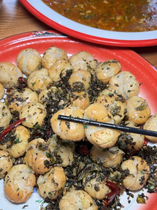 在柳州、最爱的江湖菜肯定是他! 菜品新鲜,猛火现炒,又香又辣,就是有点费米饭 菜的份量很大,价格也实惠。饭点人好多! 🧾点单推荐 🌶️干锅肥肠:又辣又爽、肥肠干香 🥔老奶洋芋:看似平平无奇,土豆泥贼下饭 🥚酸菜炒汤圆:趁热吃!外面酥脆,里面的芝麻馅直接流心,怎么又甜又咸还这么好吃。 🍖鱼香肘子:真的巨大一个,淋上特制现炒酱料真的太香了