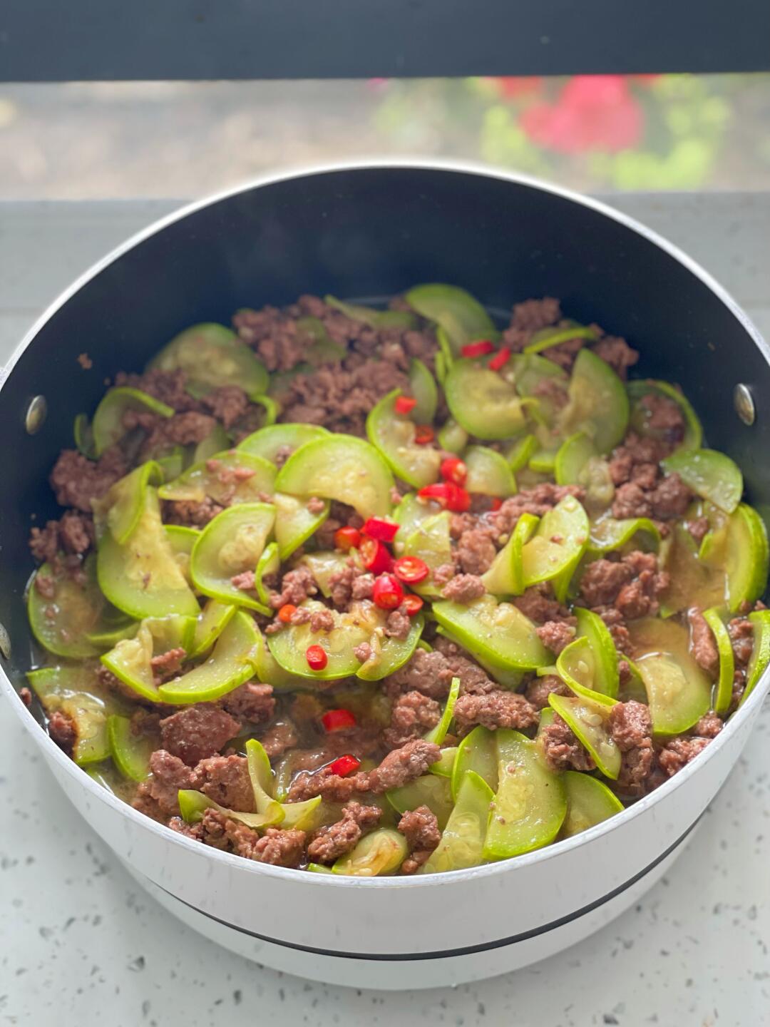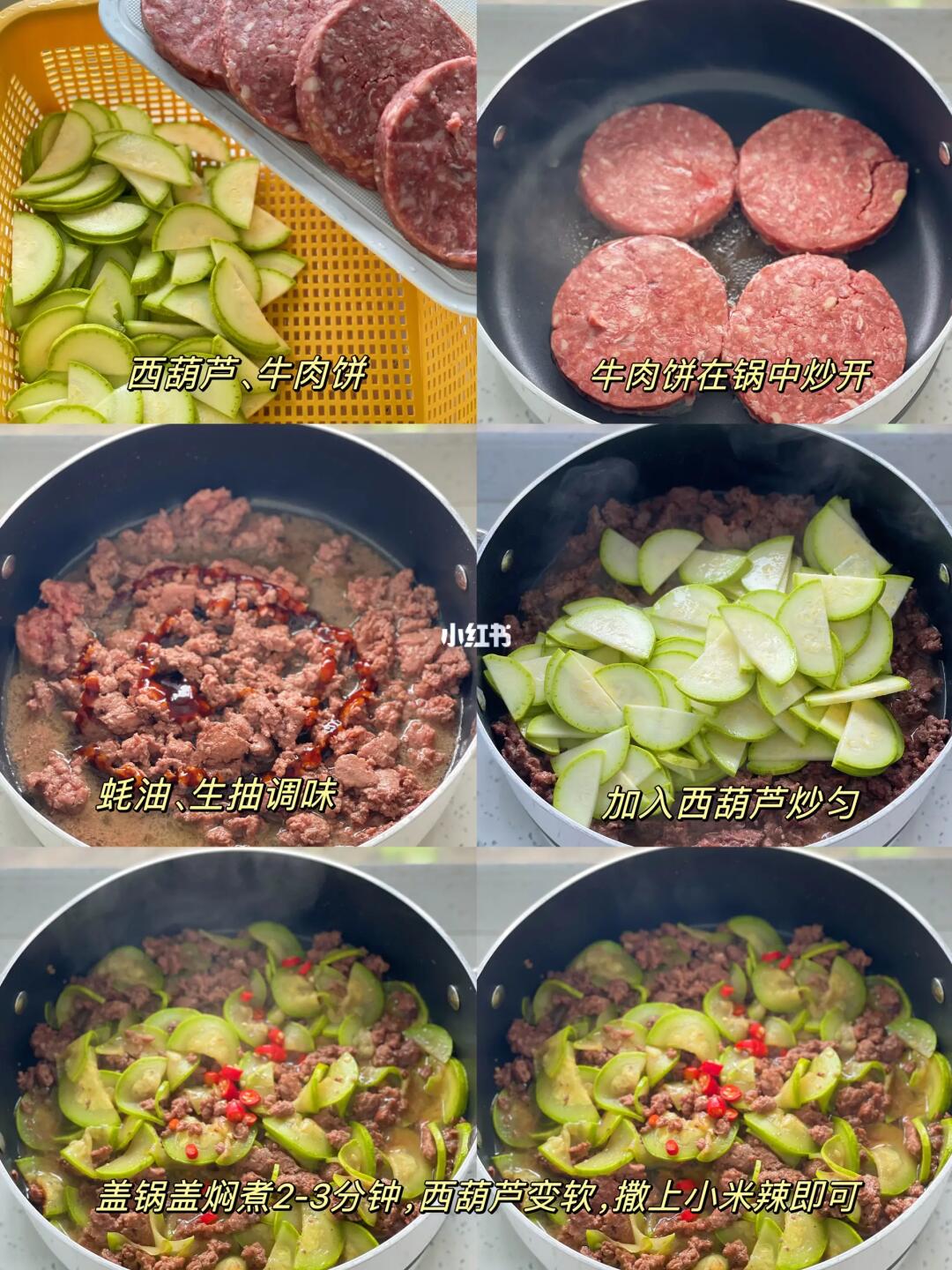 🌟西葫芦炒牛肉 西葫芦、牛肉饼、蚝油、生抽、小米辣 1️⃣牛肉饼在锅中炒散,蚝油、生抽调味 2️⃣加西葫芦炒匀,盖锅盖焖煮3分钟,西葫芦变软 3️⃣加入小米辣即可出锅 🌟煎鸡蛋 🌟无限量生菜丝 🌟拌饭海苔 🌟今日碳水:杂粮饭