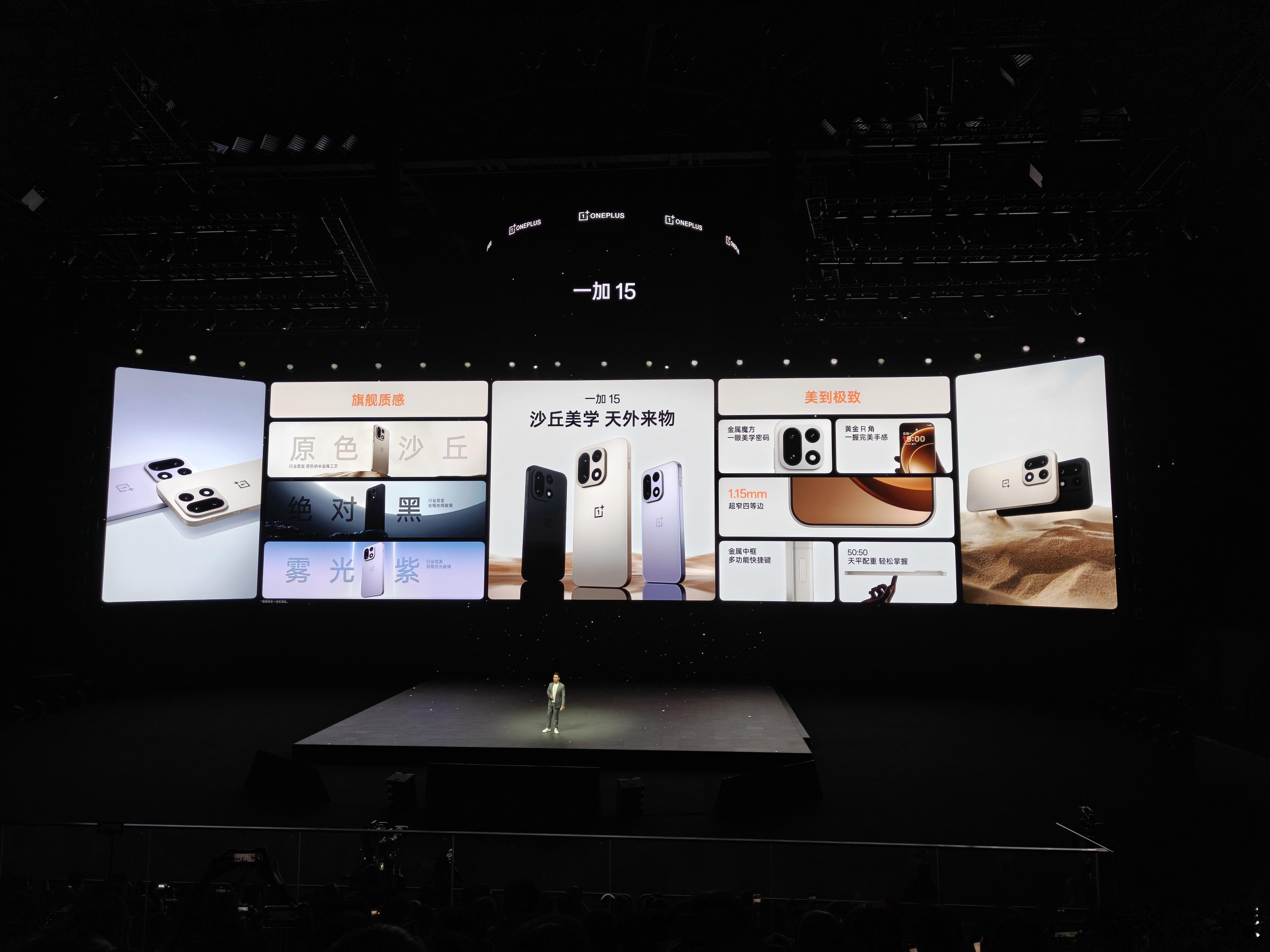 外观上,一加15有原色沙丘、绝对黑、雾光紫三个配色;有1.5mm极窄黑边屏幕;有50:50配比机身……