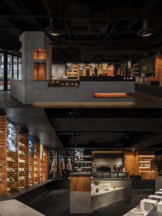 设计通过自然材料的工业(在地)化演绎,从水泥厂与云南餐厅两个场域提取两种原生主材:水泥,红土。两种材料经过工厂加工后得到:混凝土 、红砖,作为贯穿整体空间的主要材料。