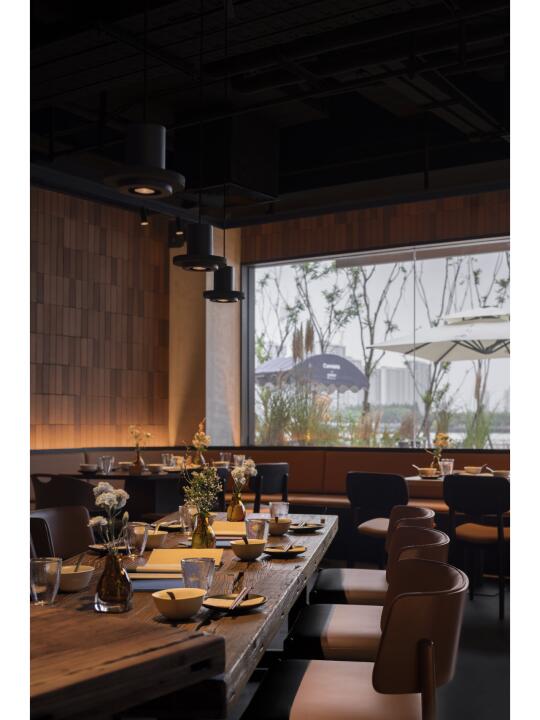 黄埔江边的风物食集是Under clouds 半山腰[搜索高亮]餐饮品牌在上海的第二家店,选址为西岸梦中心,前身为水泥厂。设计团队期望在一个水泥建造的盒子里,用自然与半工业化的语言建构一个独特的就餐体验空间。