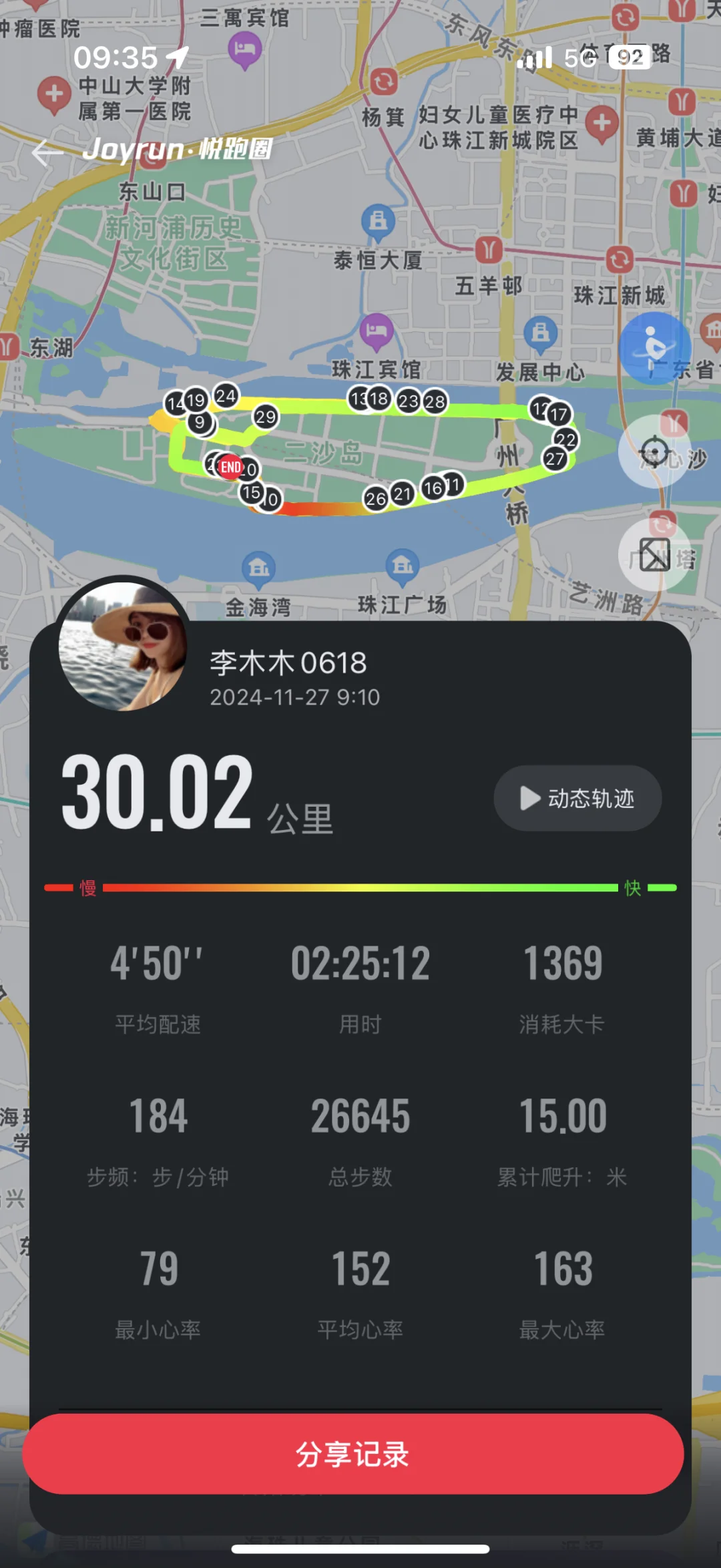 🏃♀️广州马拉松还有11天 🦵今天降温LSD30公里 配速4‘50 🤣12公里后就不想跑了 但是坚持下来 👟我也不知道为什么突然就越跑越快。。。 🦶接下来开始躺平等比赛 -