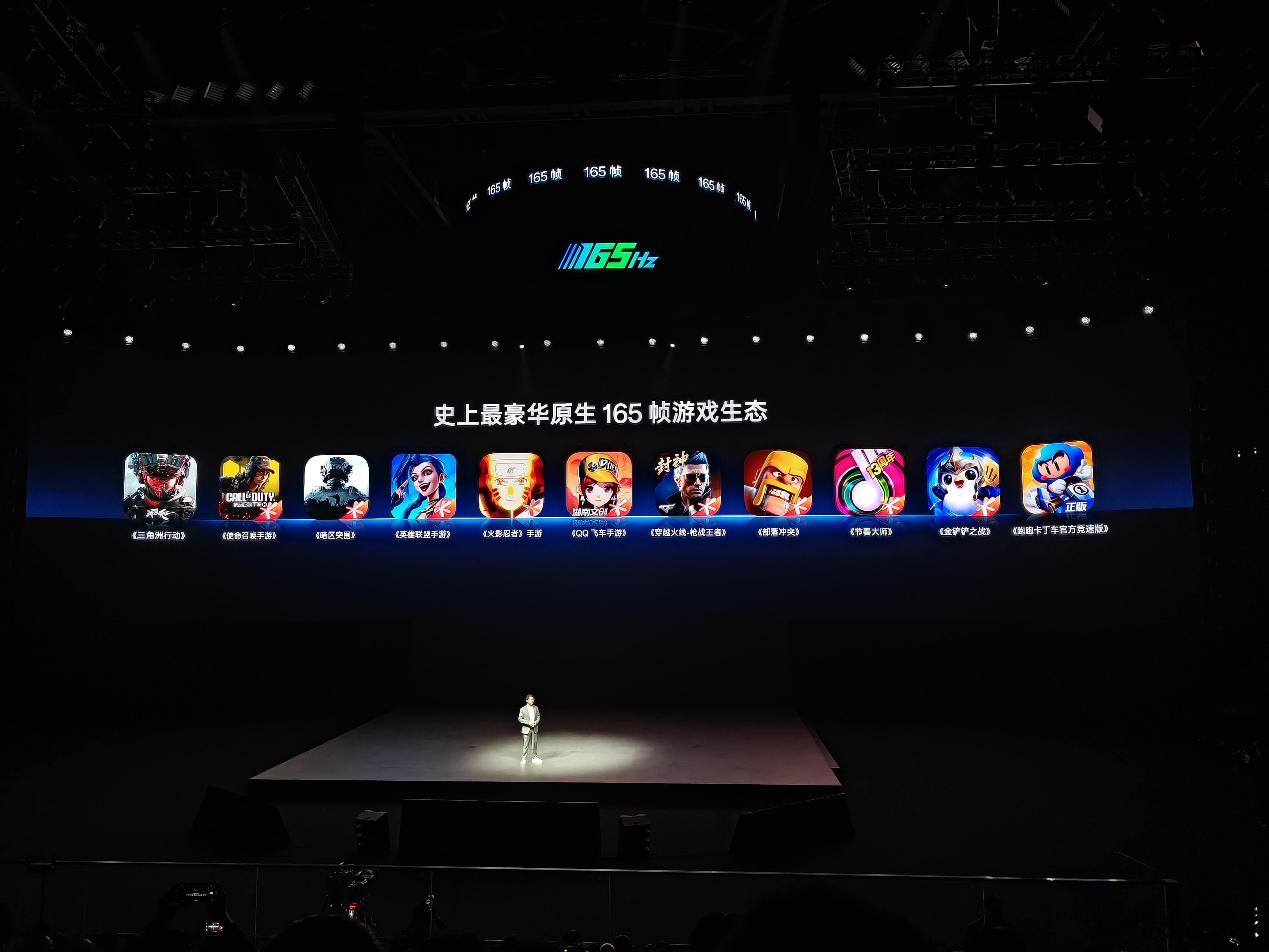 165帧高刷画面显示快27%,能更快发现敌人;还能缩短手机的响应时间达10ms……目前已经适配原生165Hz的游戏包括《三角洲》《英雄联盟》《使命召唤》……,而大家关注的王者和吃鸡也已经在开发适配了[666][666]