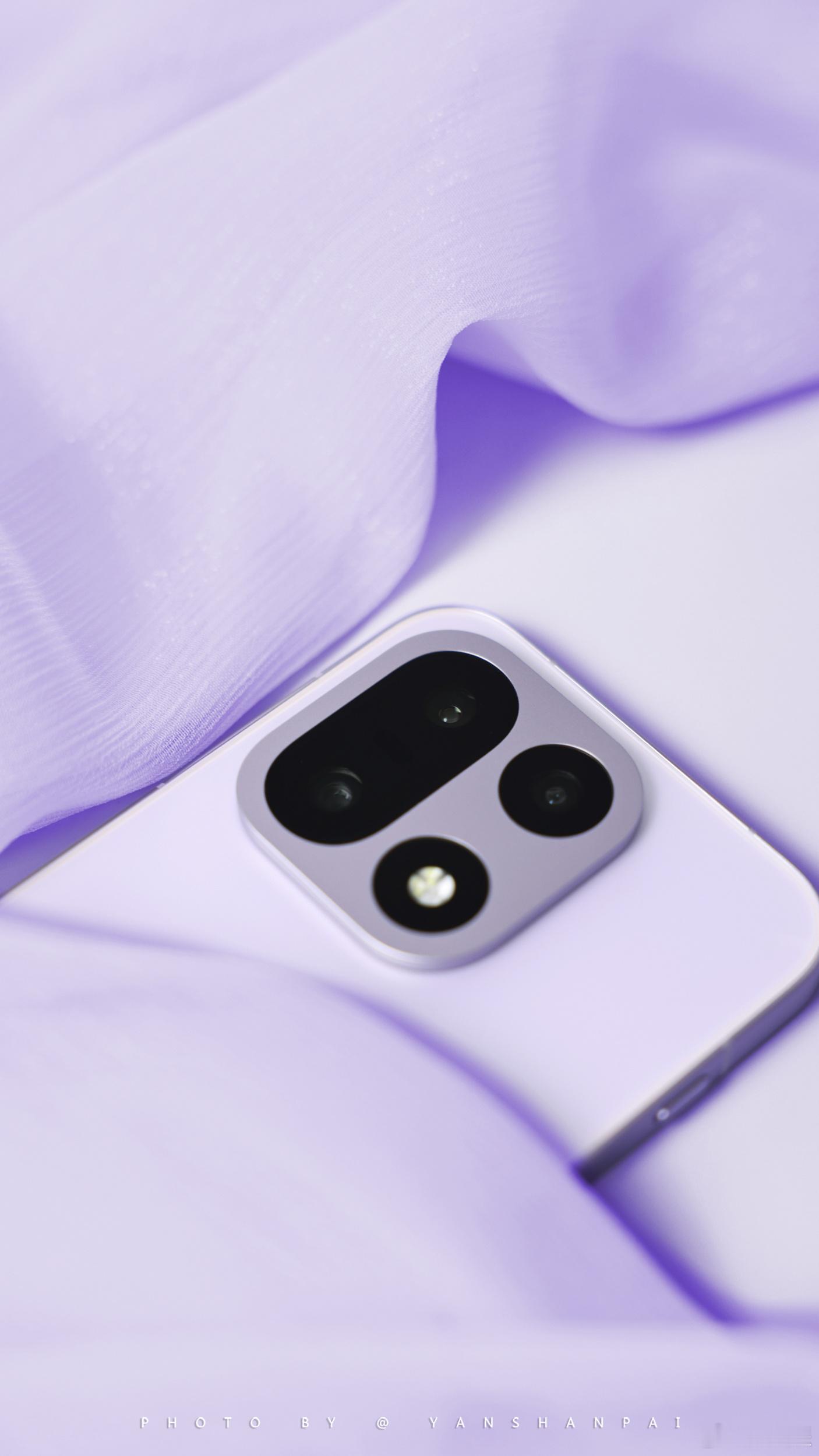 这次我们拿到的是“雾光紫”配色,和“绝对黑”与“原色沙丘”不一样,雾光紫采用双维流光工艺 ,倾斜时可以在背面看到彩色纹理,再配合原本的紫色,真的一眼惊艳,非常绝。漂亮的同时,背板还延续了AG雾面处理,不仅触感丝滑细腻,还不粘指纹。