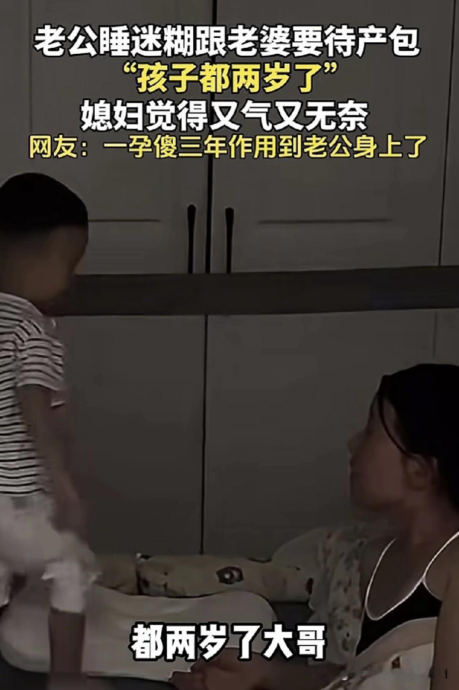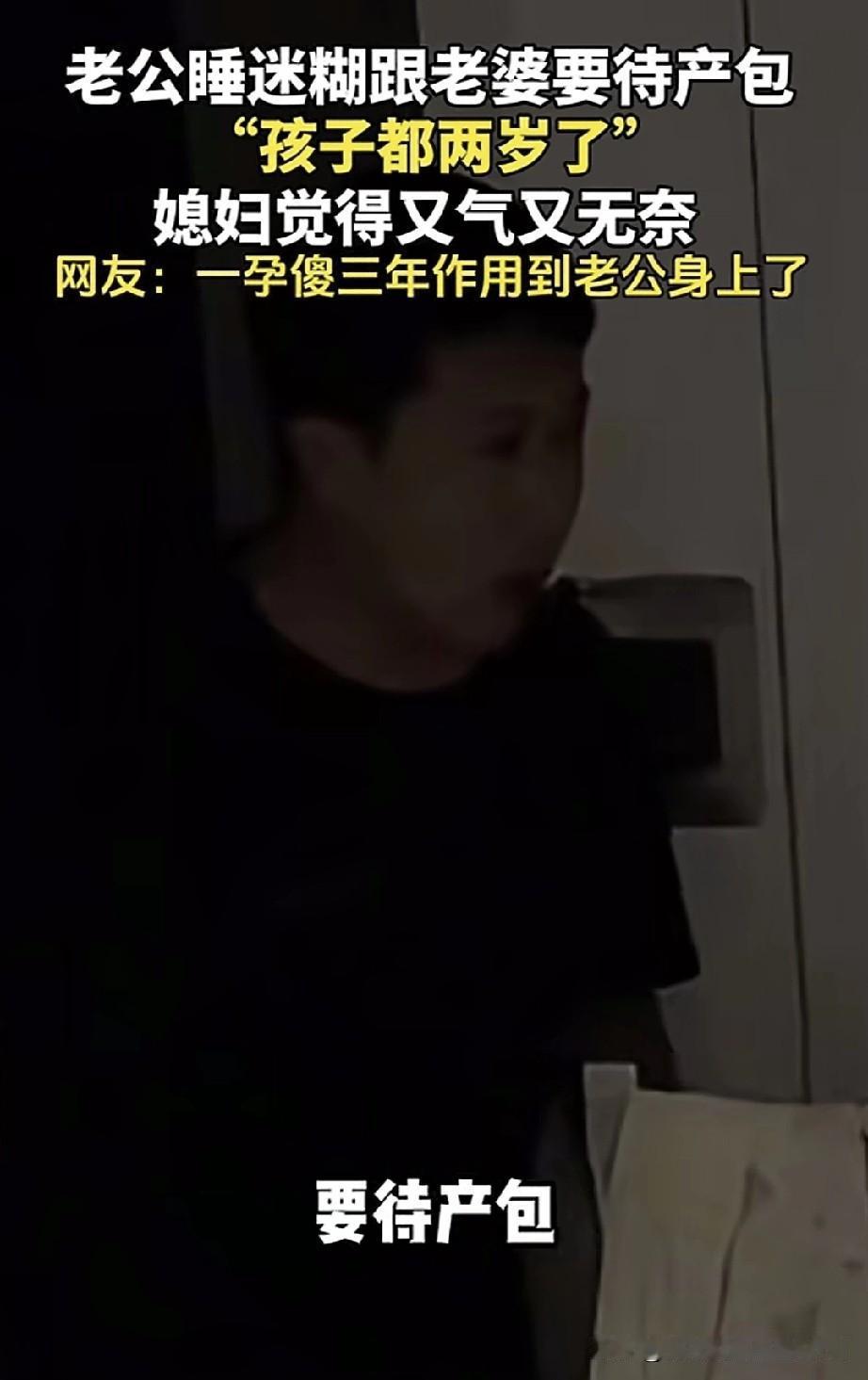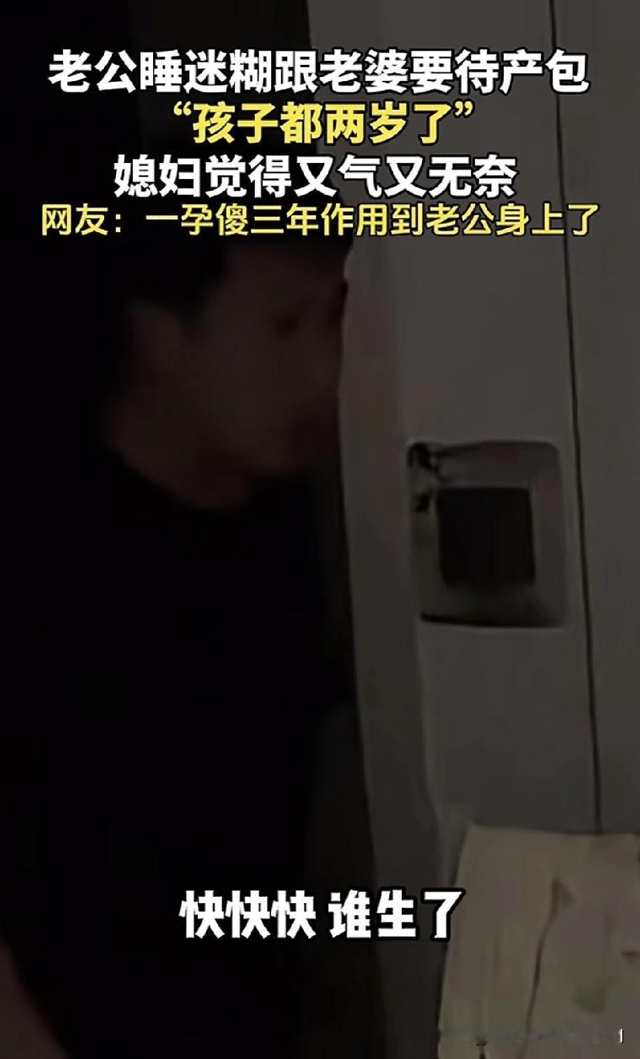 女子的老公在大半夜睡迷糊了,突然坐起来,向媳妇要待产包。女子起初没听清,又追问了一句“啥包”,老公回答说要待产包。女子听明白后,问要待产包干啥,老公回应“要生了,快快找找”。女子又问“谁生了”,老公说“你呀”。女子指着旁边的孩子,说道“早就生了,都两周岁了”,又气又无奈。这时,老公才反应过来自己是在做梦。 要说他不疼媳妇吧,做梦都惦记着媳妇生孩子;要说他疼媳妇吧,待产包在哪都不清楚,还得问媳妇。网友调侃,这媳妇一点防备意识都没有,就没想过老公是不是认错人了,外面还有个肚子快生的呢?