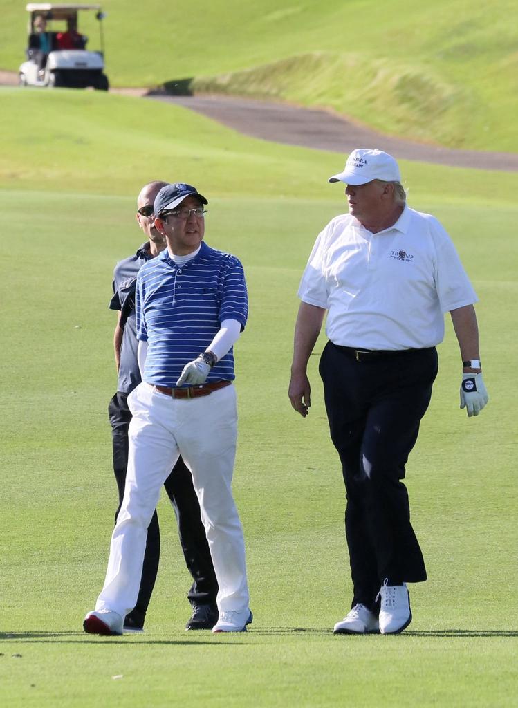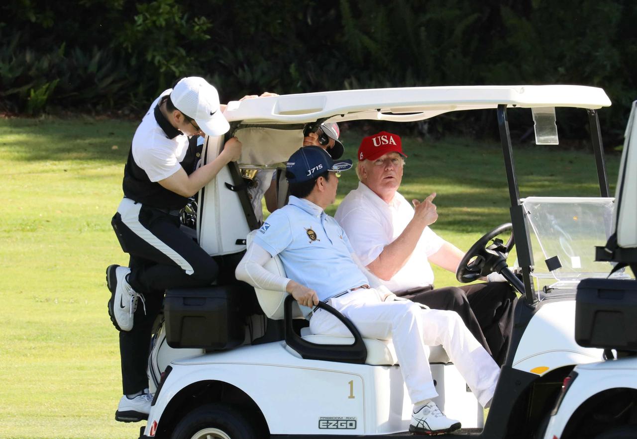高市早苗给特朗普的礼物是安倍晋三用过的金高尔夫球具,以示自己是安倍晋三的门生。安倍晋三跟特朗普至少打过五次高尔夫,在特朗普1.0任期应该是每逢见面必打高尔夫球。2017年两次、2018年一次、2019年两次,有在美国有在日本打球。 安倍晋三在讲演时被枪击身亡,特朗普在讲演时被一枪擦耳,险些丧命。