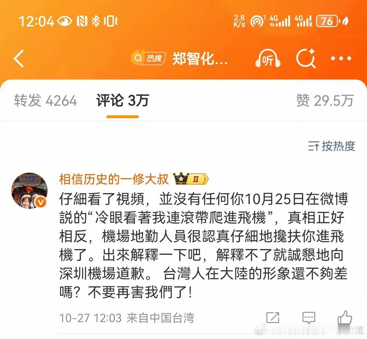 关于郑智化吐槽深圳机场的事情,台湾网友对郑智化夸张的说法比我们还生气,因为大家看了视频,一是当时有工作人员帮忙,没有冷眼旁观;二是机场升降车普遍存在高差,是国际通行标准,不是深圳机场特有的缺陷。而且更败好感的是,本来就是郑智化自己在夸大其词,还连发三条“声讨”文章,有点“倚残卖惨”。对于台湾网友的客观公证评价,我们万分感激,但深圳机场升降车高差达到了20cm,超过了国际公认标准的≤10cm,说明我们确实还有需要改进的地方。
