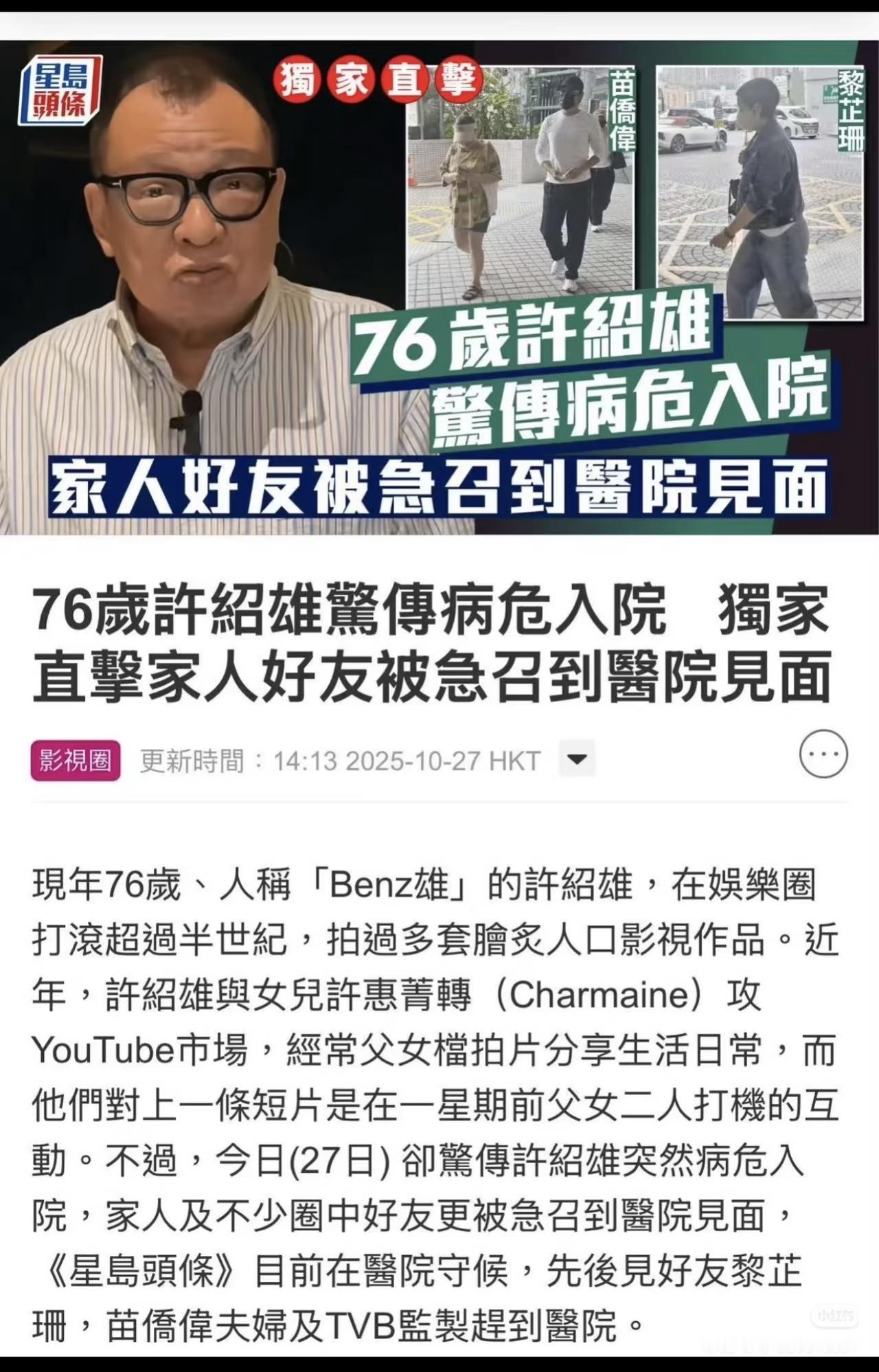 看佘诗曼的采访, 说到欢喜哥的情况, 都哭了 , 那多数危险了, 唉! 她都改了行程,哎! 本来还觉得问题不大, 但是看到这么多艺人朋友去医院, 那些明星下午三四点, 已经开始陆续去医院探望, 有些像梅艳芳那时候, 感觉不妙! 佘诗曼
