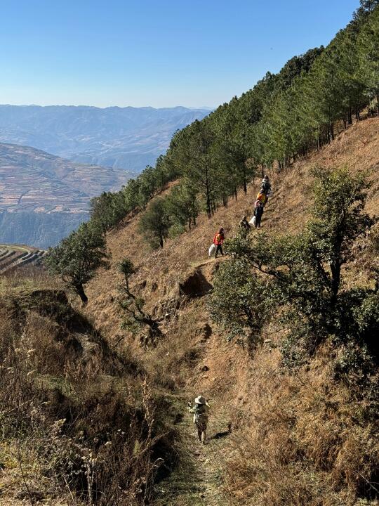 -密林徒步单向穿越距离13km左右,海拔max2744,爬升不大,起点苏撒坡,终点益民小卖部。经过密枝林-村庄-松林-山谷-高地斜切-山路回到沙必朗村庄搭车返回昆明。