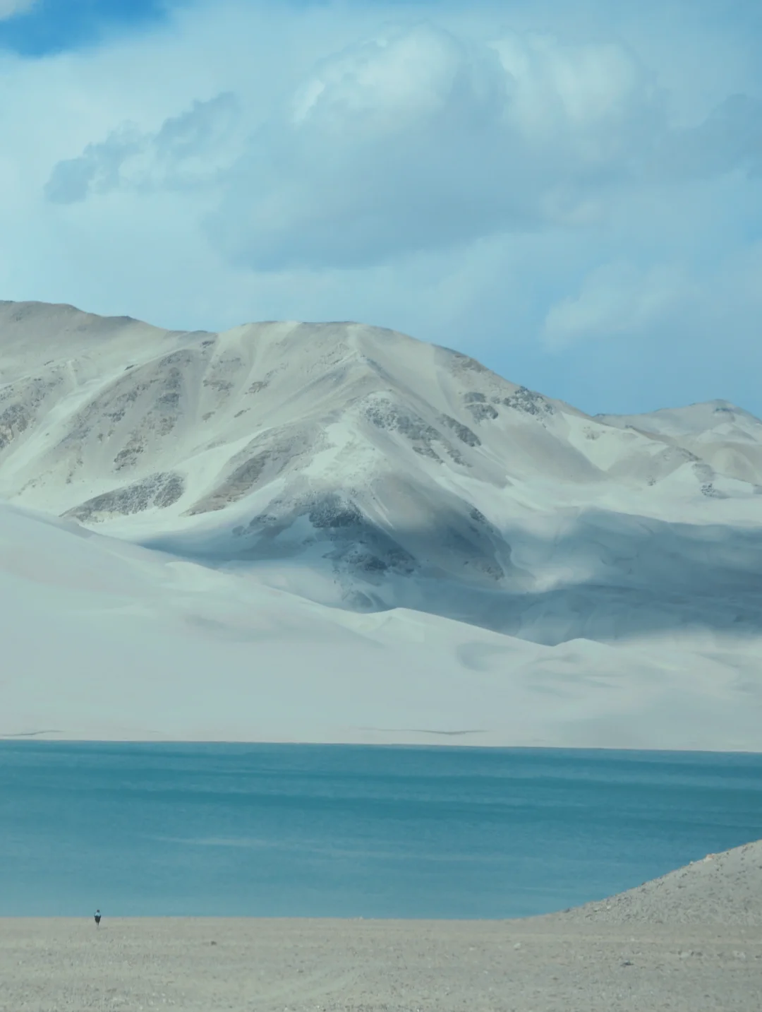 从夏甫吐鲁克村出发 离开沙漠 沿着昆仑公路 驶向白沙湖 我想过一百个形容词去描述白沙湖 但遇到它那一瞬间 我整个语言系统瘫痪了 那一刻我只想静止 远离人群 看着风吹起 水波纹荡漾 天上的云彩倒影在白沙山和水面 阴影和光在赛跑 🤍🩵🩶白沙湖tips : 景区人多,北岸、东北岸G314去木吉火山口那个岔路往前开,人逐渐减少了