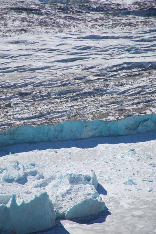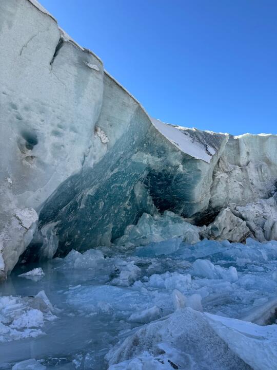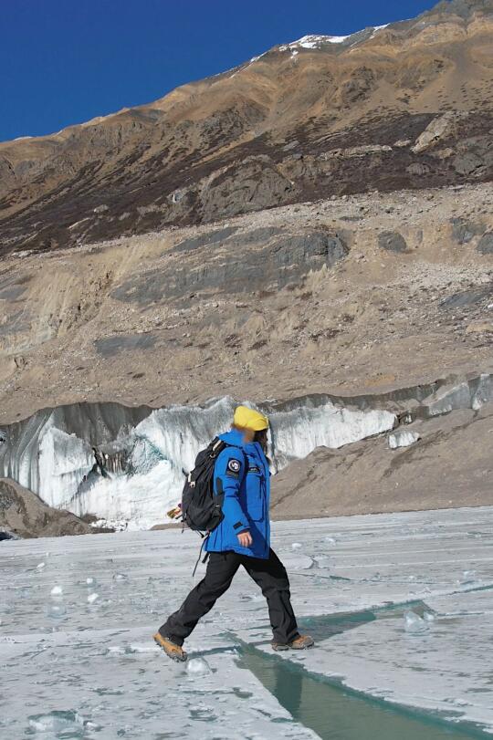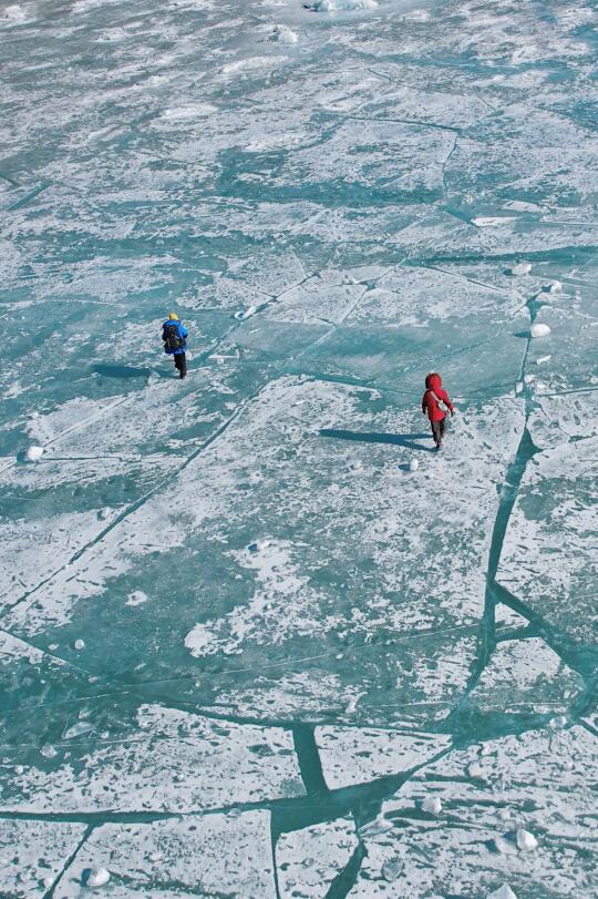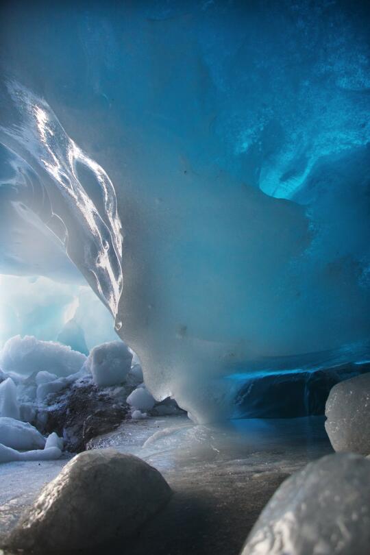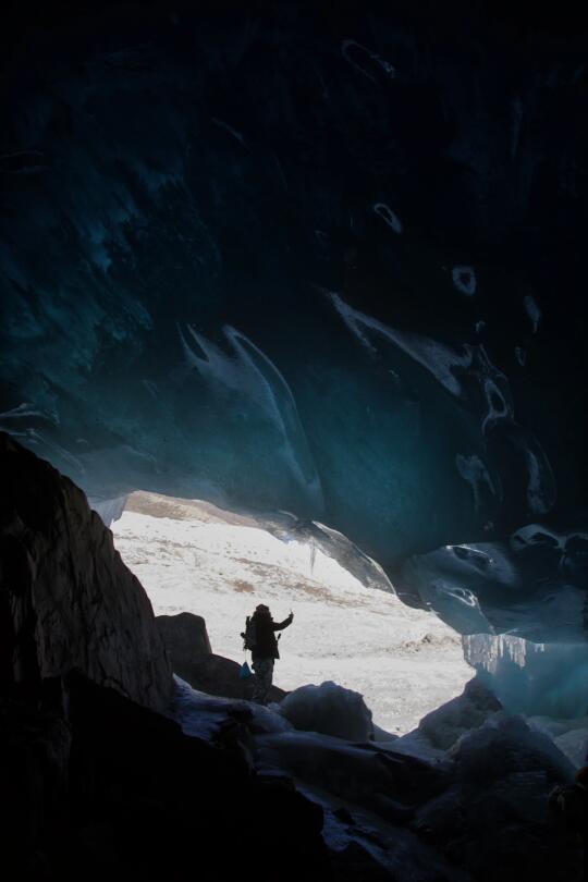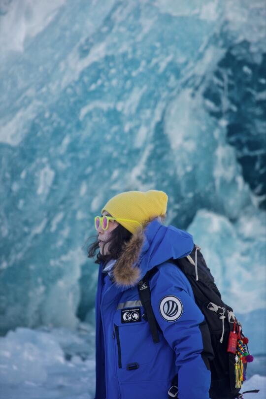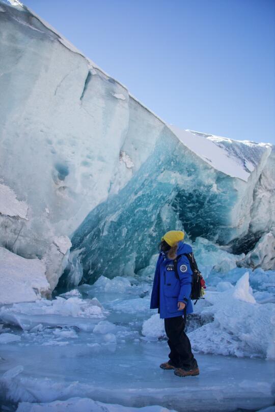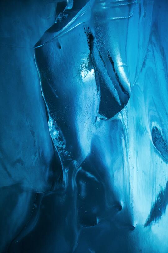 从下车点到冰墙、冰洞徒步来回至少3公里吧,下坡上坡,要点力气,比来古远一丢丢。站在冰洞里面,我们在蔚蓝之中,眼睛忙到看不过来,在这个不真实的世界,各种形状的气泡被冻住了(图8)