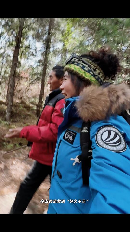 12月的西藏穿着羽绒服出着太阳,白天还好,太阳落下温度就掉到零下,普通游客走7-8公里的路线,多杰在这来回巡山一干就是18年,记不清走过多少个7-8公里,还有数不清的山路.可每次遇到山里的新奇玩意儿,他总眼里冒光大叫我们上去看,激动的像个小孩挥舞着手。