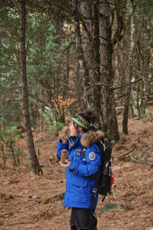 我们跟着多杰徒步,他边走边用汉语词组、短句来描述他的日常工作,一天两趟垃圾清运,至少100斤垃圾。清理洗手间,看有没有游客在林区🚬…… 琐碎而平凡的日常