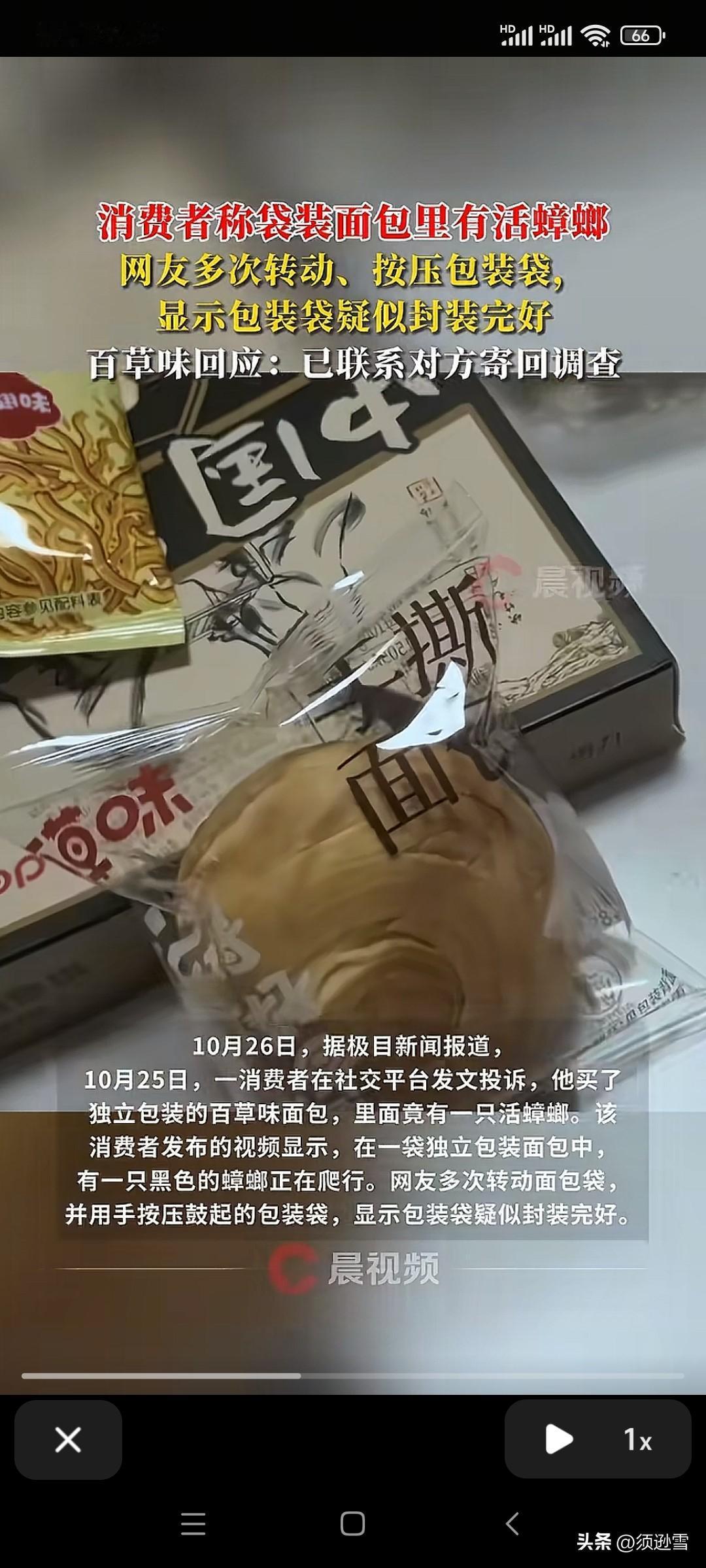 密封的面包里面有活蟑螂! 第一,这个蟑螂是什么时候进去的?! 第二,包装,运输,上货期间为什么没人发现?! 第三,9月25日生产的, 到10月25日一个月时间过去了, 这只蟑螂竟然还活着, 这是为什么呢?! 希望能尽快解决吧?! 为什么食品安全总是出问题呢?! 餐厅有蟑螂 惊现蟑螂事件 蟑螂活多久 蟑螂特写 冬天蟑螂 蟑螂提取物 蟑螂面包
