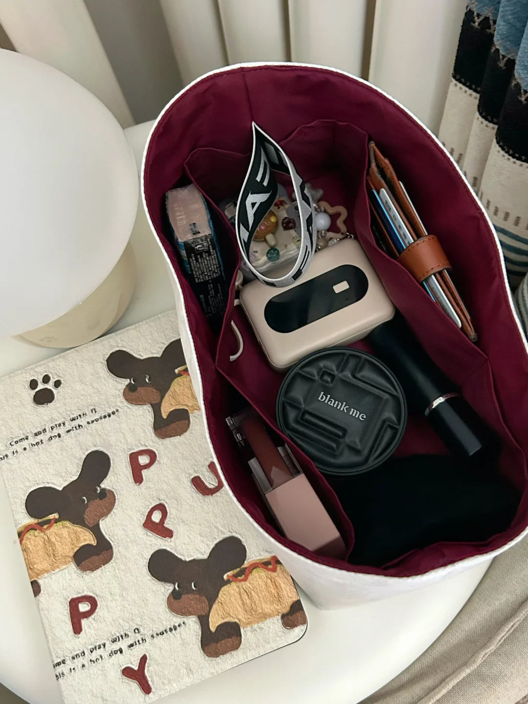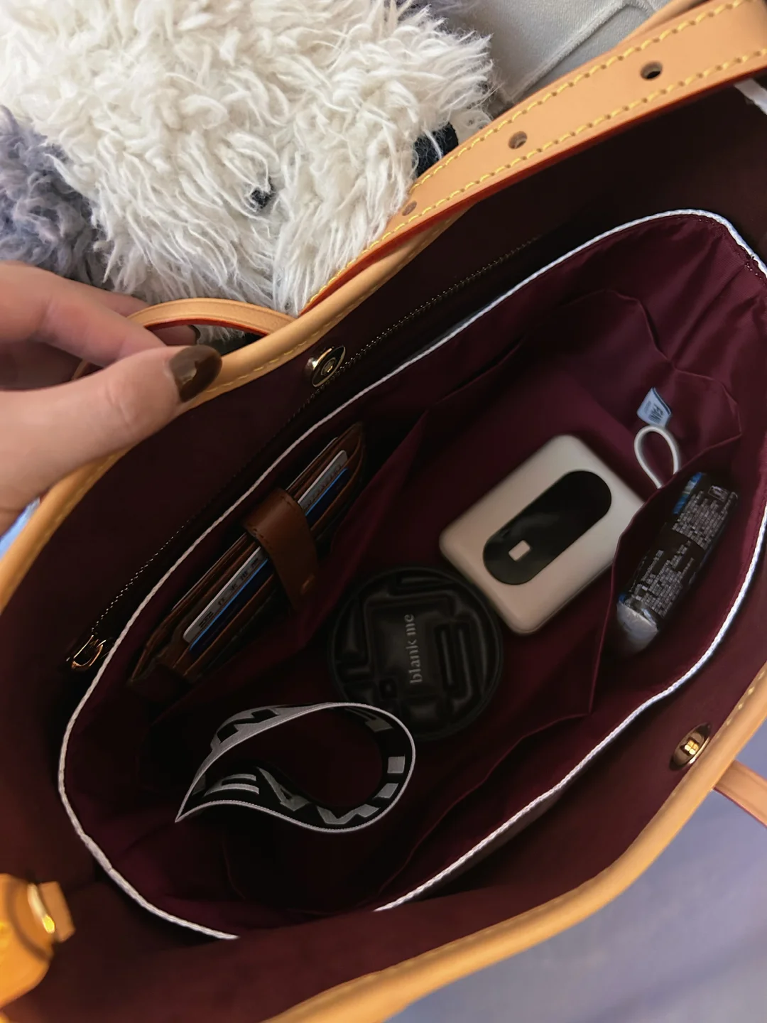早些年买完奢侈品包包的小农心态都是害怕用坏以后在二手市场上不好流通,于是过安检小心翼翼,装东西小心翼翼,角角落落剐蹭小心翼翼,用的太累好多包都闲置了,三十岁以后心态好了很多,越发觉得无论平价贵价,包的基础作用就是装东西,背着好看用就完了,真正喜欢的包无论使用场景如何、是否过时,可能都不会想着要卖掉,唯一需要注意的就是包包首饰一样,需要爱护才能陪伴更久,在日本拿下这支包的第一时间我就开始搜内胆,顺手把子包也改造一波,这款内胆包材质是杜邦纸,支撑性很好也贴合carryall的包型,我比较喜欢它不会改变背起来时候的样子,装上内胆以后开心背着去出差,不怕装东西漏到包里了,今年最后的一个小目标就是把闲置的贵价包全部背起来,做到物尽其用!
