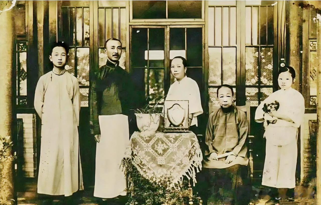 这是一张少年时代钱学森与家人的合影。 站在最左边的是十来岁的钱学森,身着长袍,面容稚嫩而清秀。他身旁是父亲钱钧夫,钱钧夫是民国时期的著名教育家,正是他引导钱学森学习理工知识,走上技术强国之路。 母亲章兰娟站在中间,她出身杭州富商之家,钱家所住的宅子便是她的嫁妆。她记忆力和计算能力超强,这一优点也完美地遗传给了儿子钱学森。右边是钱学森的祖母和抱着宠物犬的小女佣。 (图片来源网络,侵权必删)