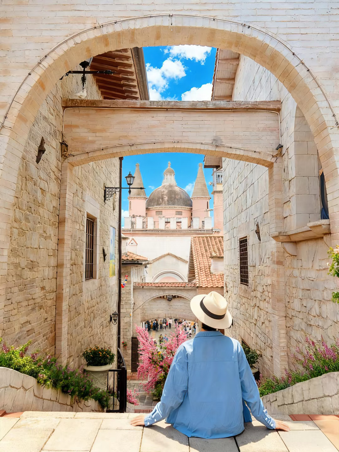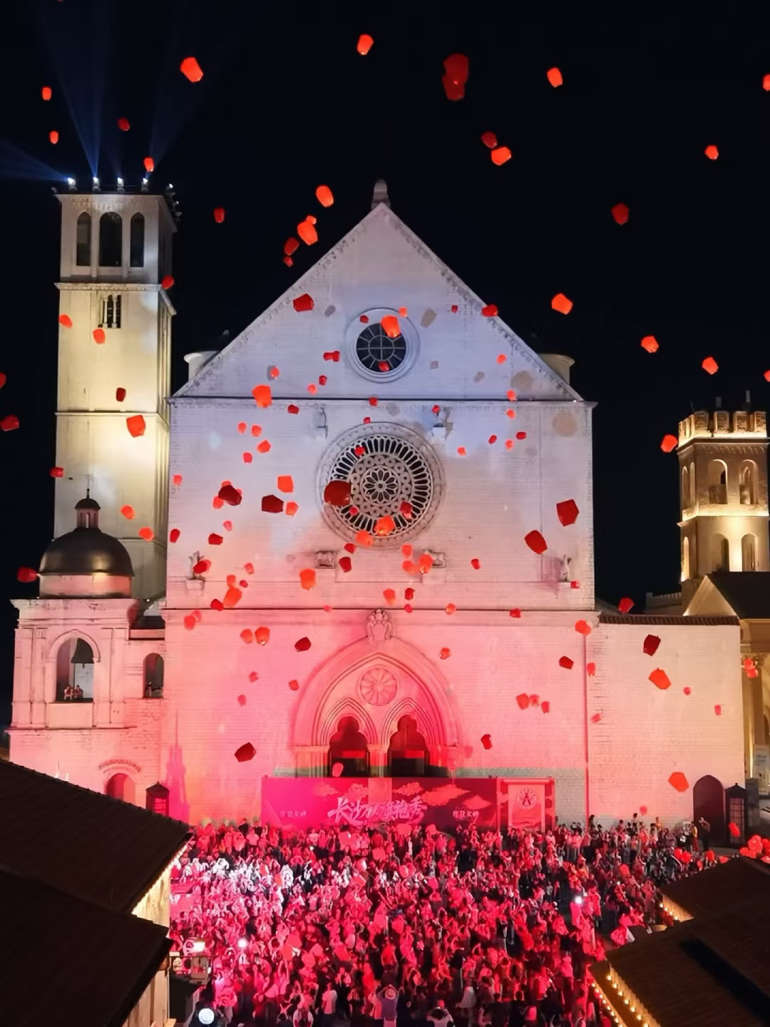 在阿西西城堡前一起倒数放飞天灯,合唱歌曲🎶