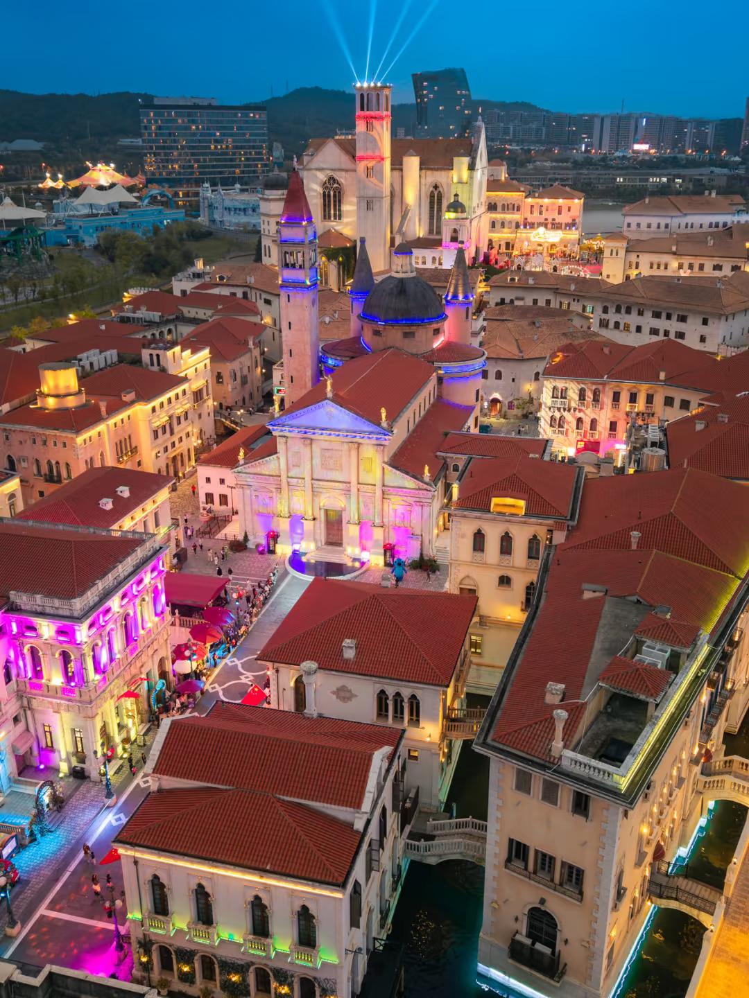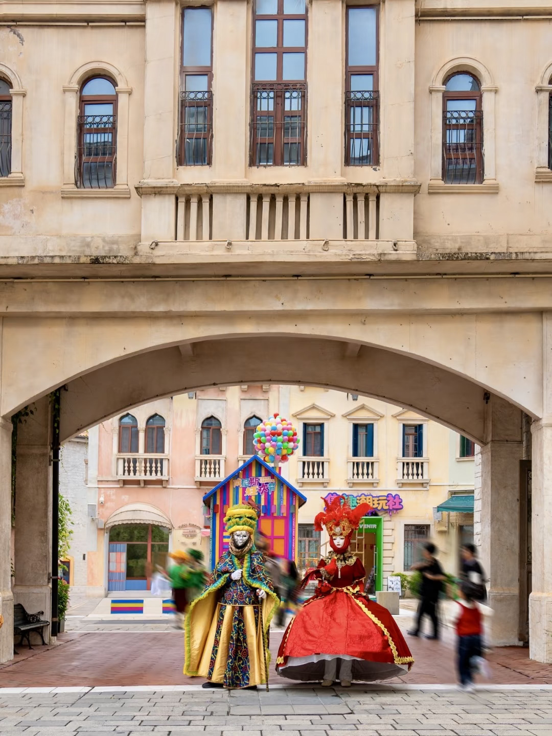 入园后左边的游船起点,坐上贡多拉,或在桥上以河道欧式城堡为背景,怎么拍都很出片