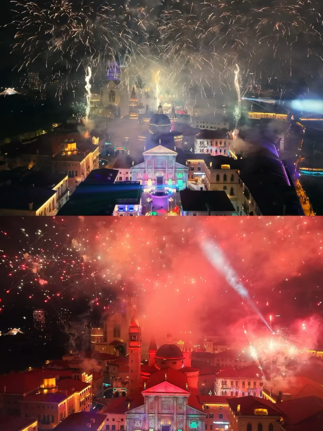 欣赏绚烂的烟花秀和光影秀,国庆期间还🈶非遗打铁花