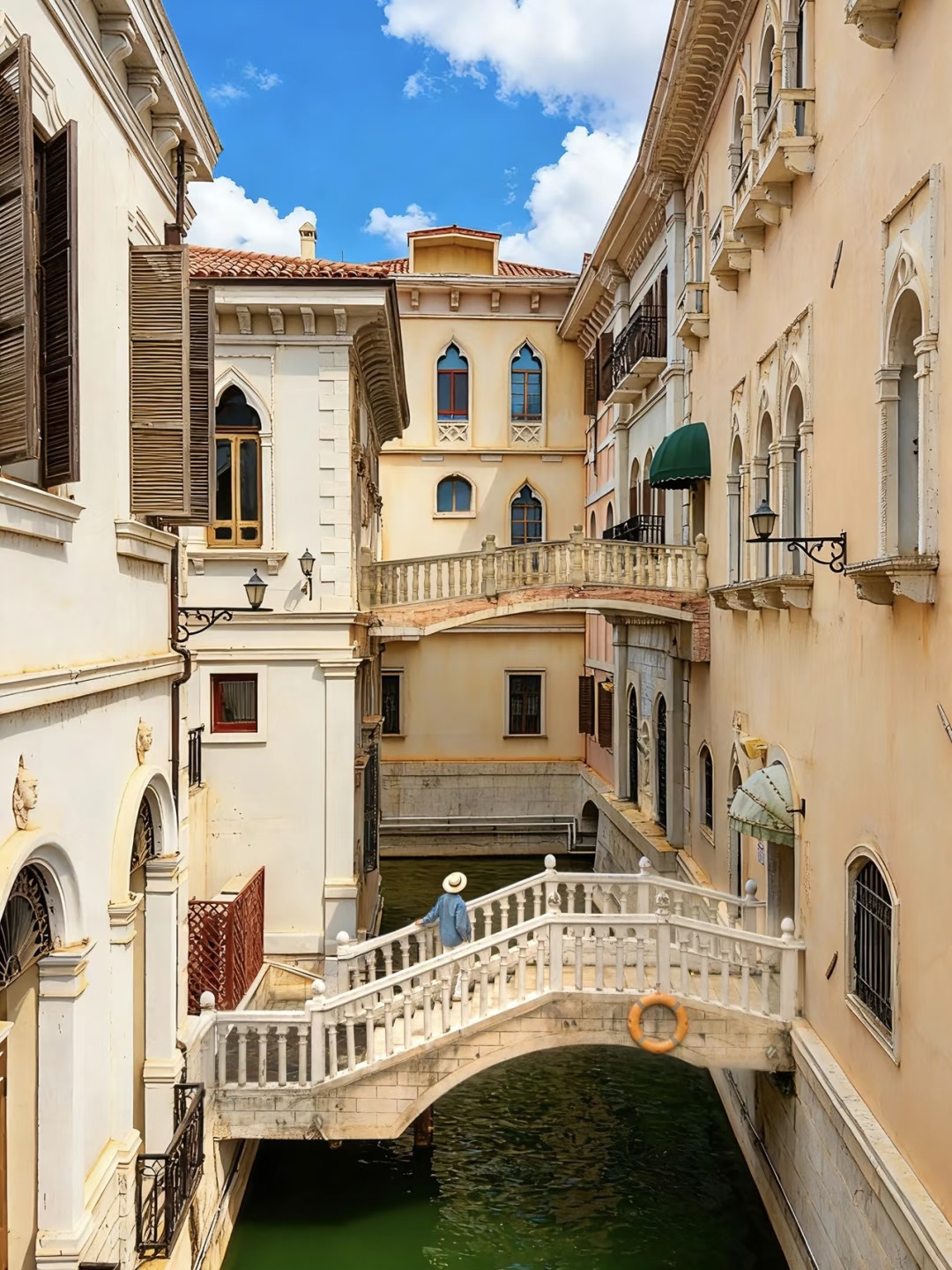 穿梭在建筑与欧式拱桥之间,波光粼粼,一秒穿越到意大利