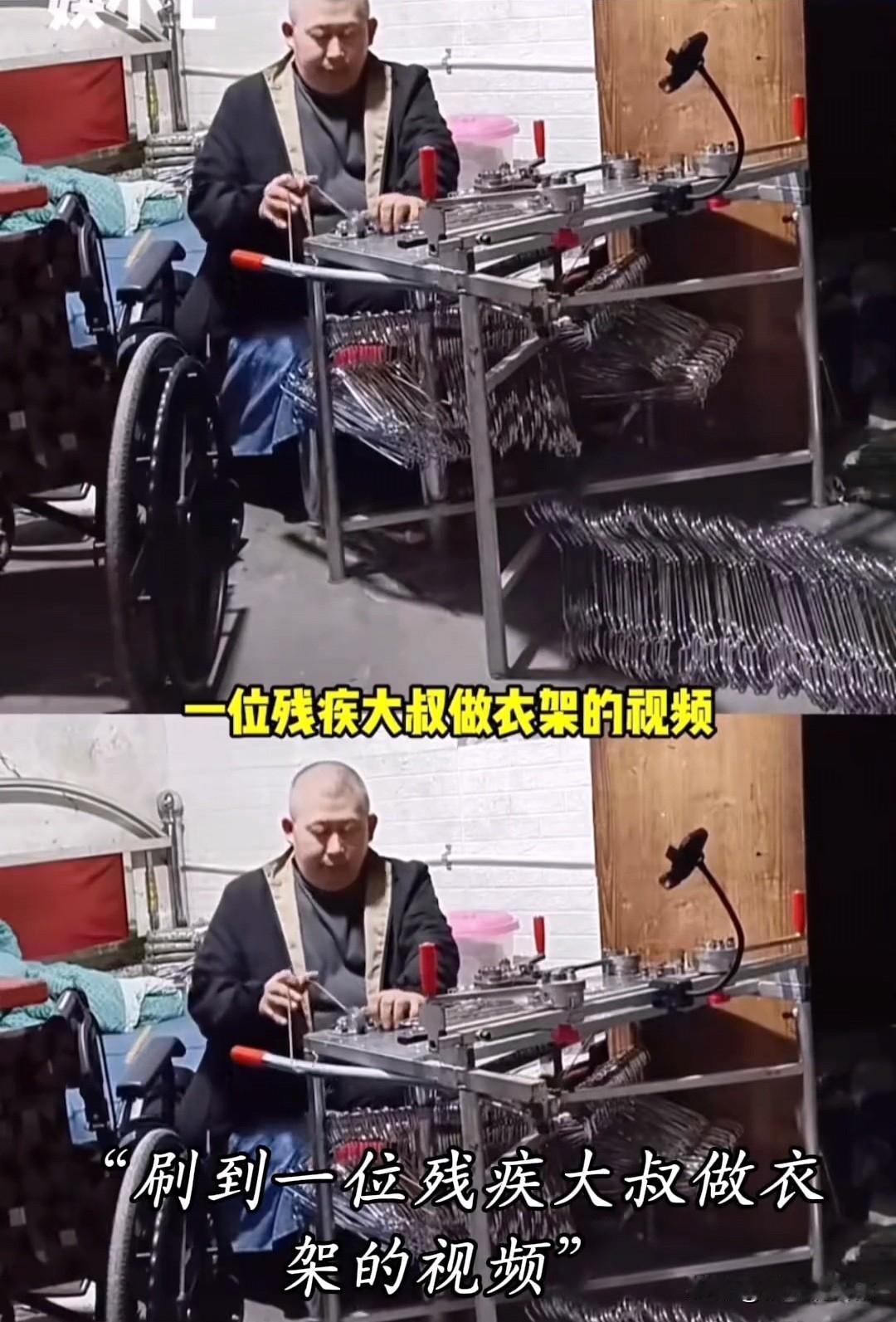 看到一位残疾大叔做衣架的视频。 我每天上网就是为了看到这种感人的消息。 让我