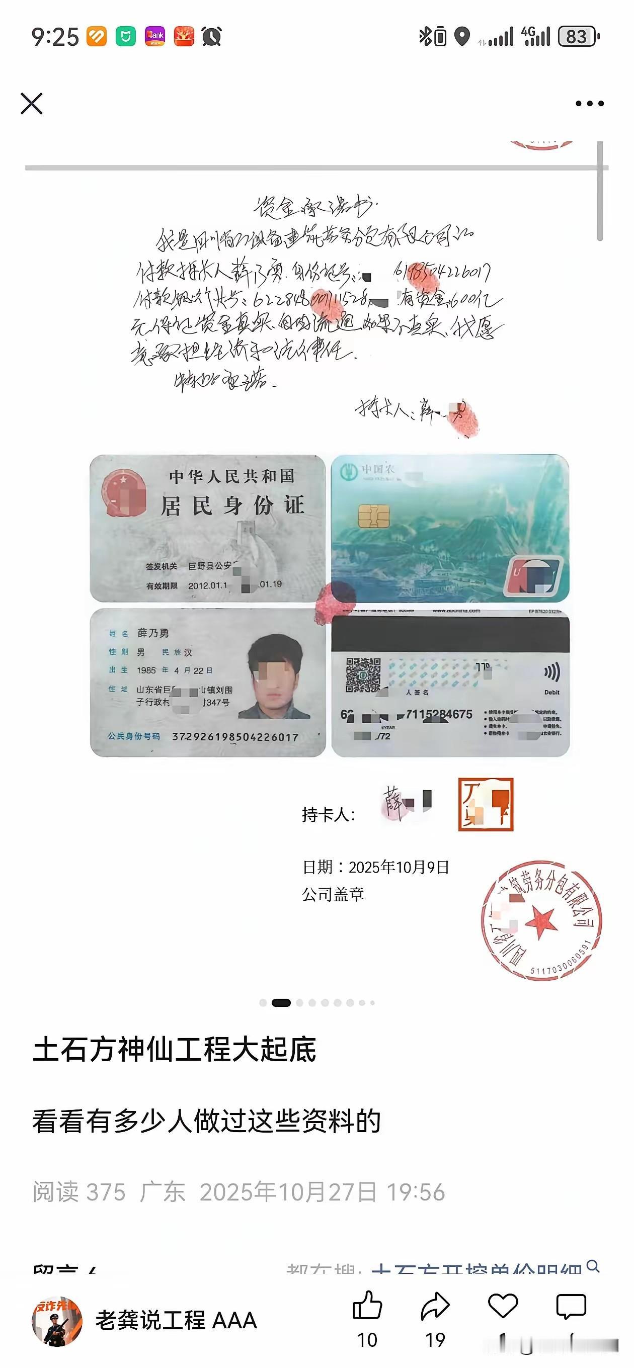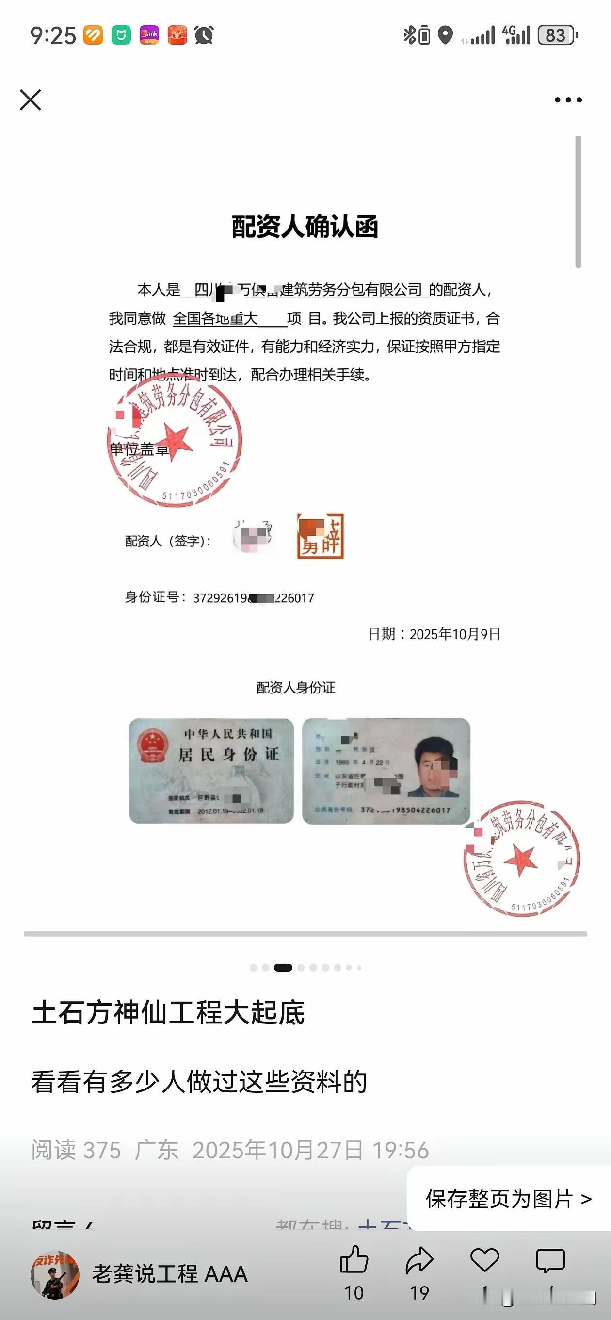 全国所有“保密工程”、“军方工程”、“万亿土石方”操盘者感觉都是同一个祖师爷,毕业于同一个培训班,无论内蒙古、赤峰、四川还是海南广东等等地方的这类骗局他们的流程都基本一致。无意中吃到从一个之前从事过这类骗局的参与者口中得知,他们其实就是利用了大部分急功近利、梦想一夜发达的心理,受骗者为什么会不断有,就是他们都这认为自己不会受骗,最紧要的还是操盘的开出的价码太大,都是不用你垫资,有3000万或者5000万的预付款,这个价钱谁看了不迷糊。 近几年在这一类型的骗局中,基本都是要求劳务公司、需要提供征信、无犯罪记录证明,和局中者交流得知,要求这几样是因为有建筑资质的公司基本不会参与他们这种局,因为这类公司都会严格执行招投标的要求,就算别人介绍的也会要求提供中标通知和网上的招投标文件。要求提供征信证明是因为如果你是黑名单他从他身上也榨不出油来,要求无犯罪证明是因为要看你这个人能不能惹得起,有刑事记录的他们也不敢惹。 如果你正在参与这类型的局,但你又无法确认真假的,那最好的办法就是把参与的资料和相关人员的照片发出来让大家帮你辨别。(转发网友)