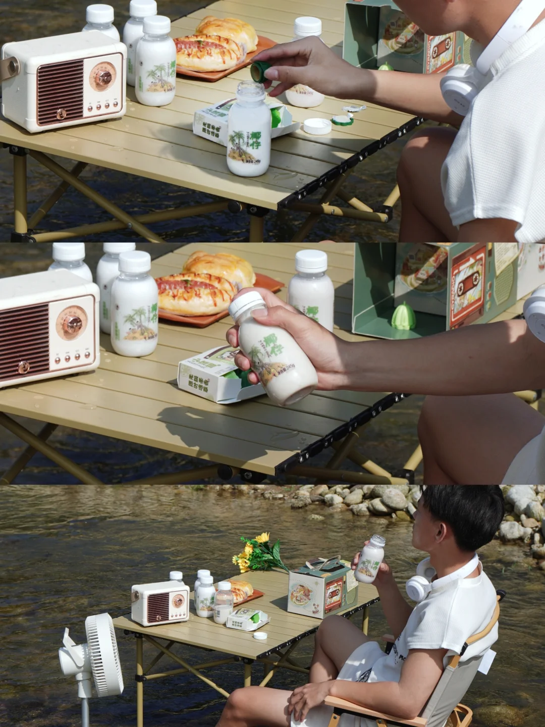 🔸这次出行朋友们说想搞个露营版围炉奶茶,我想哪里需要这么复杂,带上茶颜,直接一步搞定。制作很简单,一倒一摇3秒搞定。三种口味(声声乌龙、桂花弄、少年时的生椰版奶茶)任意挑选,我最喜欢的就是桂花乌龙生椰版,很清爽,淡淡的桂花香,真的爱了🥰。