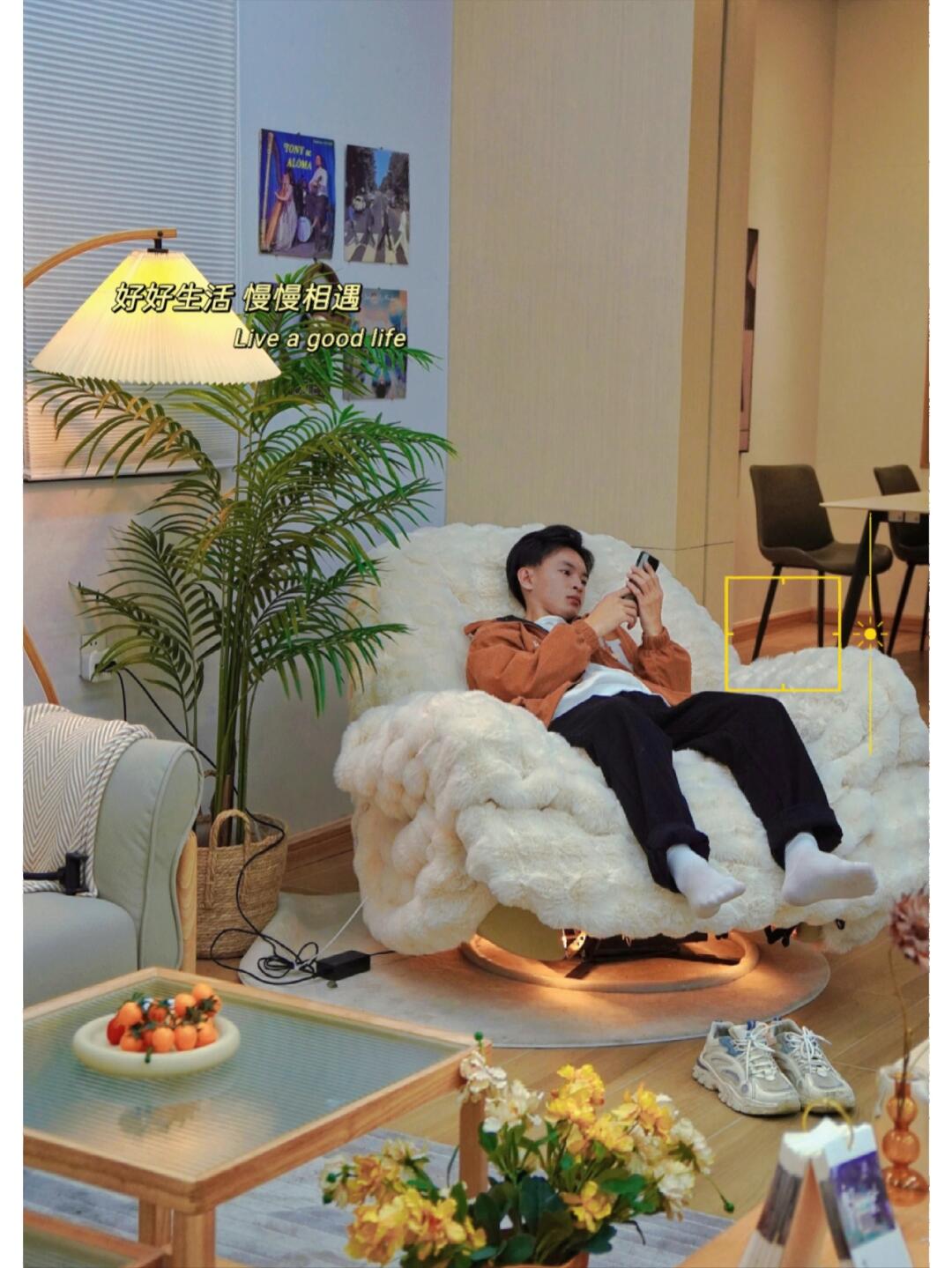 这款单人沙发配了手机支架跟音响,这样在家就可以解放双手,享受沉浸式追剧了📺