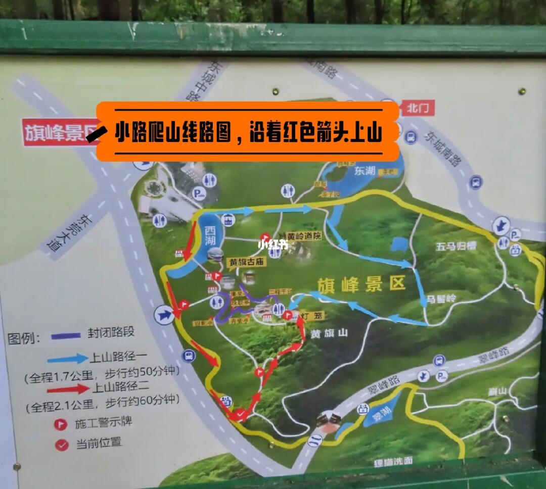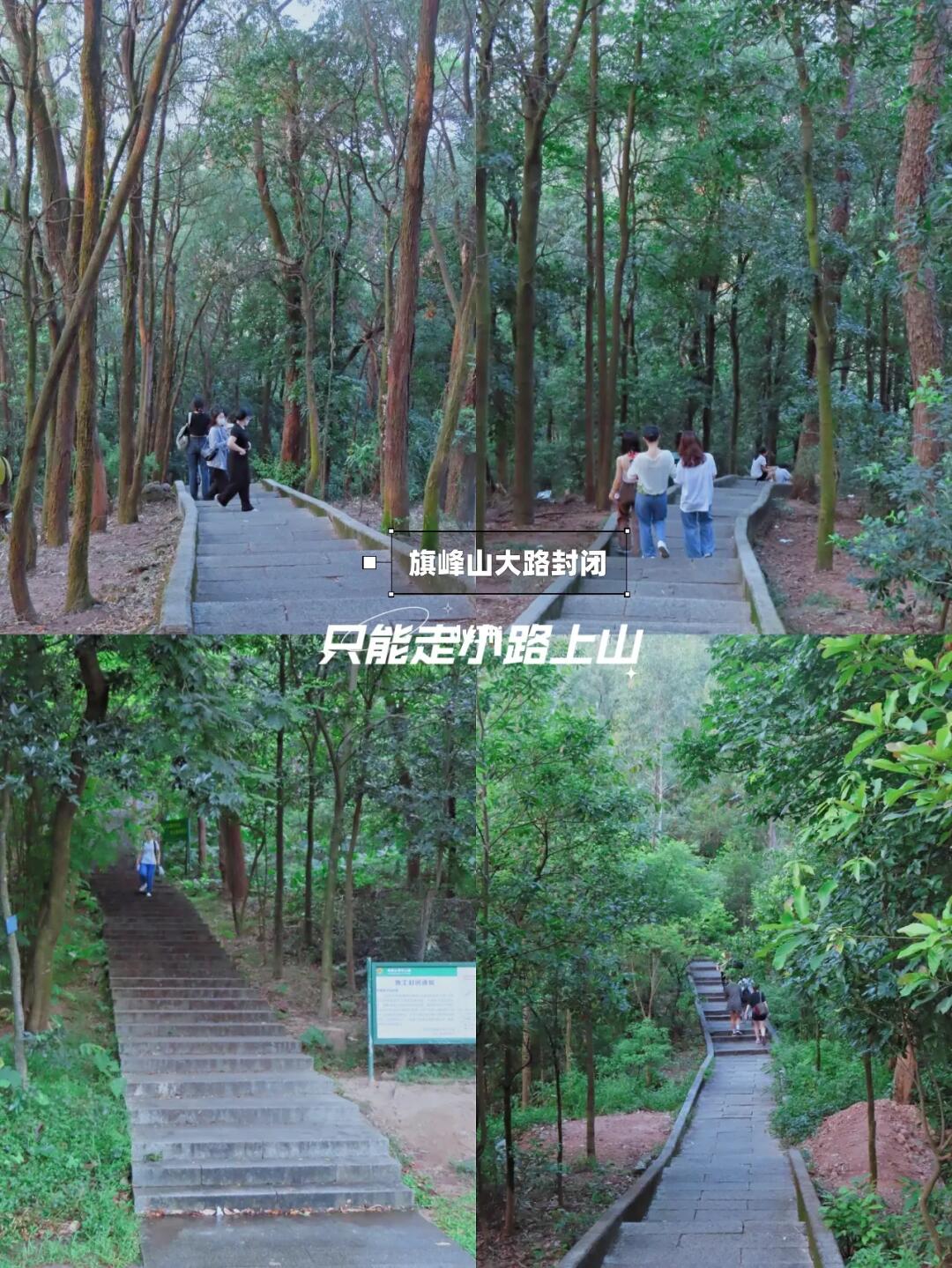 旗峰公园因为修路,封了大路上山(封到9月30号),只能走小路。留意最后一张图的导航。(从公园大门到山顶的路线)