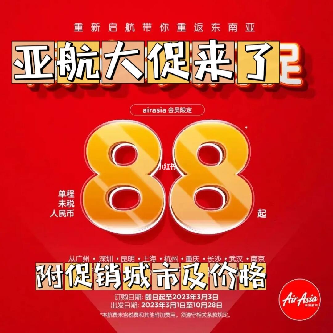 明天下午16开卖,仅限3天!出行时间:3月1日-10月28日,覆盖五一、端午、暑假、国庆 - 大部分航线都是88元,连北京、上海都是 预订方式:官方小程序等 含税价见图二