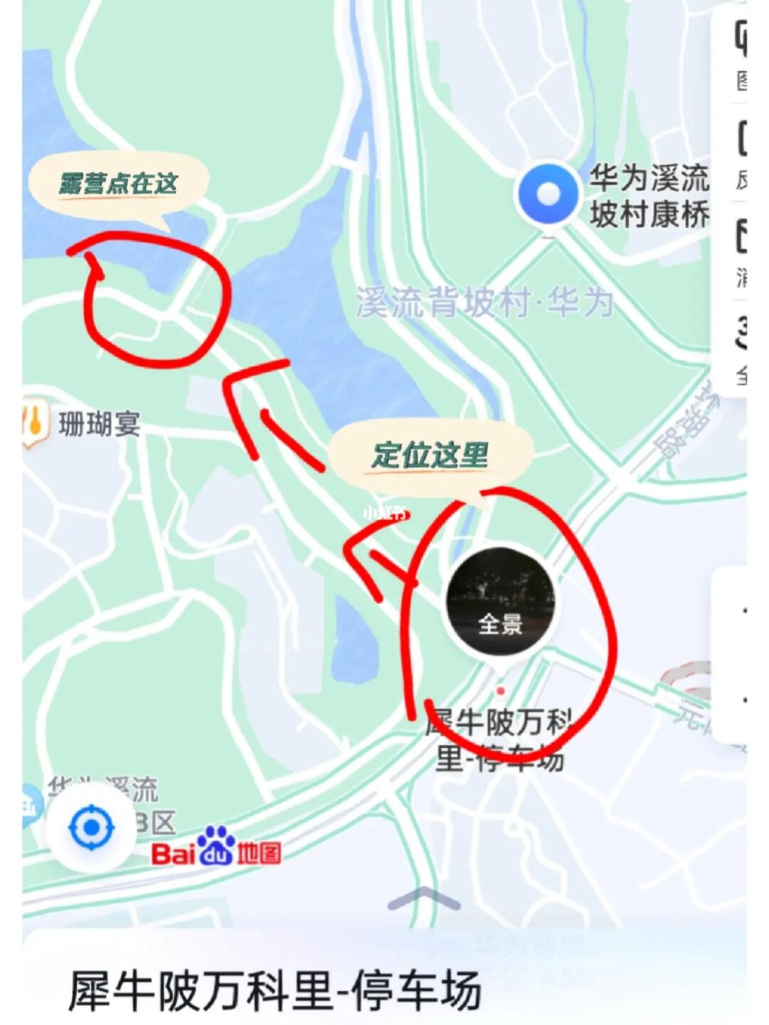 注意看最后一张图,的导航📍犀牛坡万科停车场。然后在马路对面直行进入松山湖景区300米就可以看到这里了。