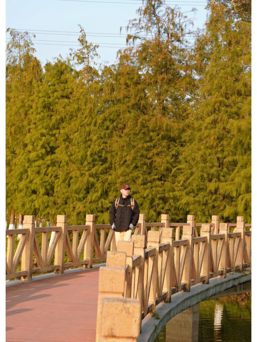 公园真的很原生态,也马上迎来了一年中最美的时刻,湖边成片的落羽杉逐渐通红,有冬天的色彩。很适合来这里拍照、露营、溜娃,骑行等等。