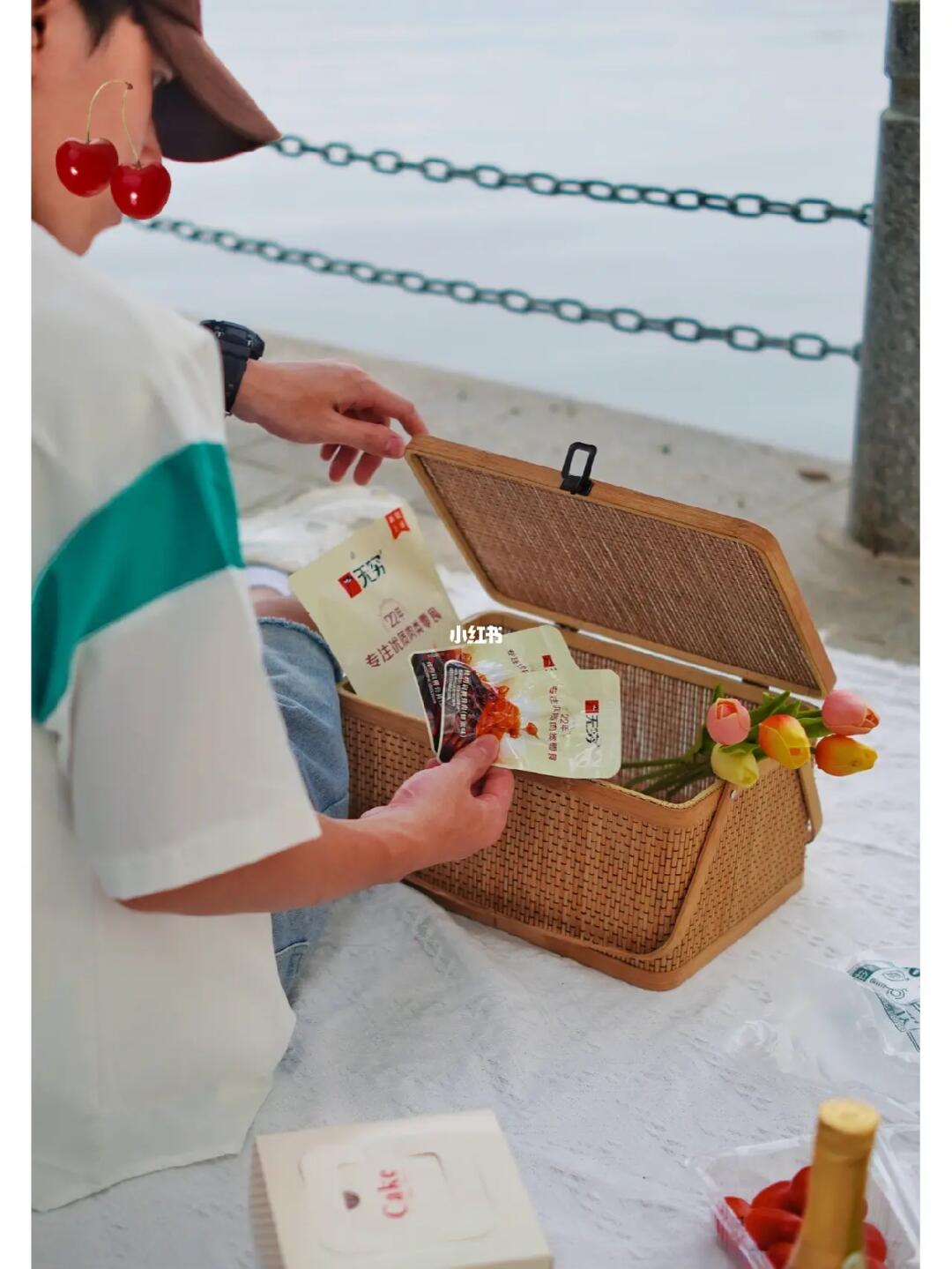 1⃣装备:餐布是180*180cm、编织篮装零食水果、竹篮宽用来收纳、户外灯、菜板这几个装备加起来,其实一百多,是我一直会带出去野餐的装备。拍照好看,又好收纳。