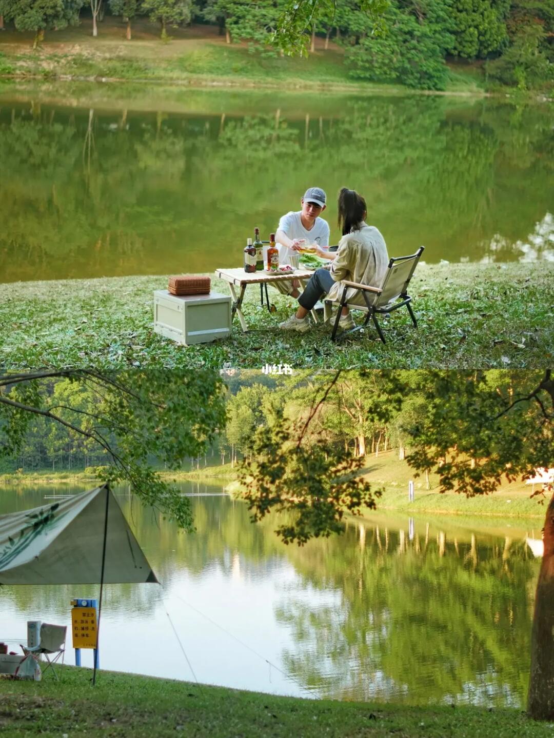 ✅关于露营植物园后面这片湖,特别是靠近迎宾馆这边,基本没有管辖,所以大家可以搭天幕跟用卡炉。 车就停在湖边,距离露营地不到50米,很方便。