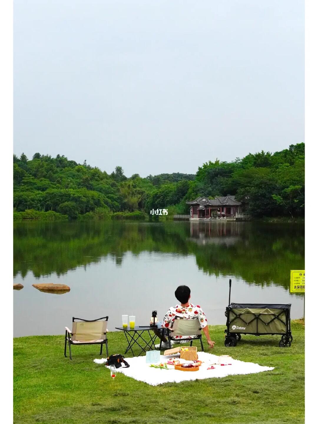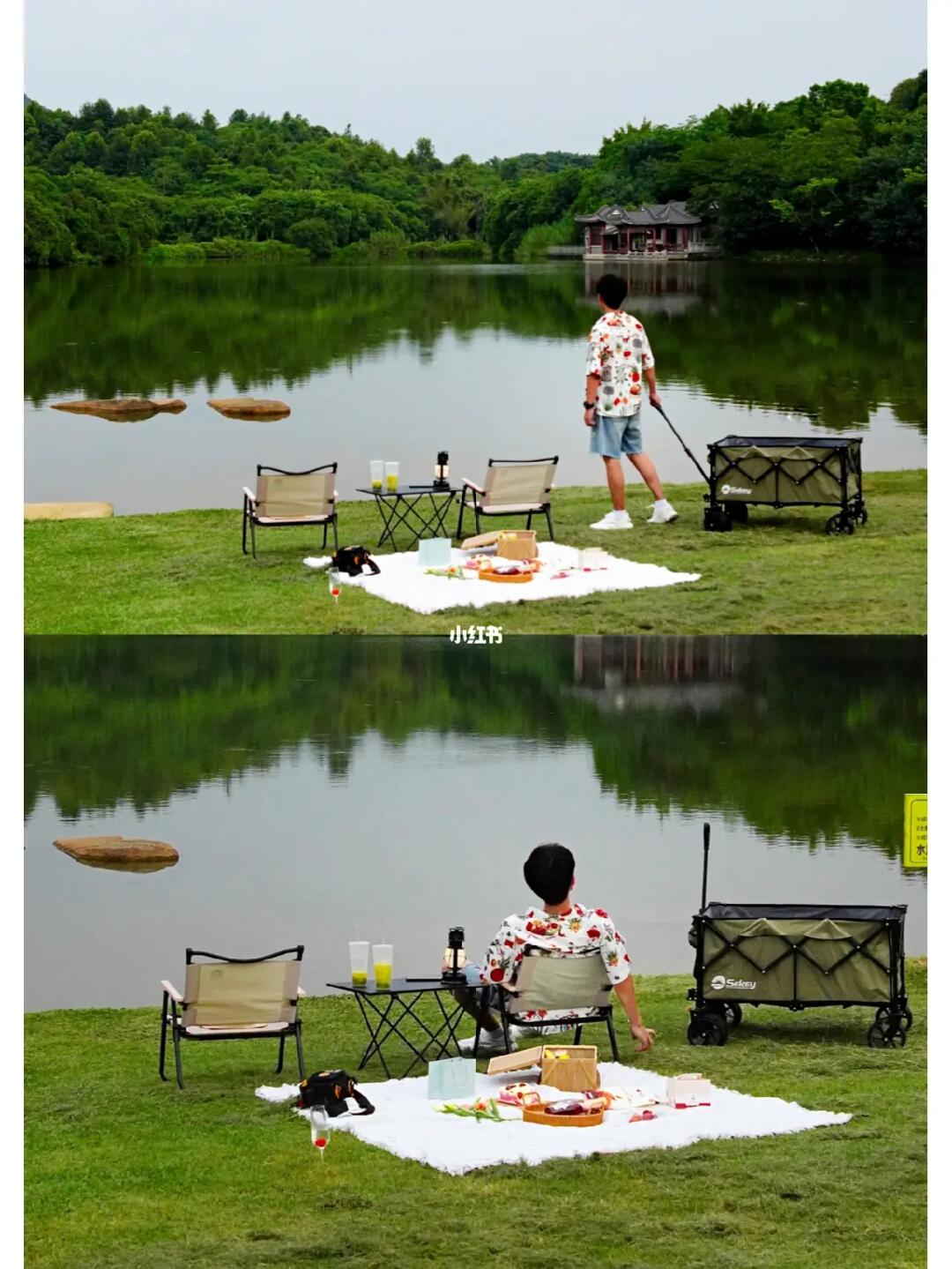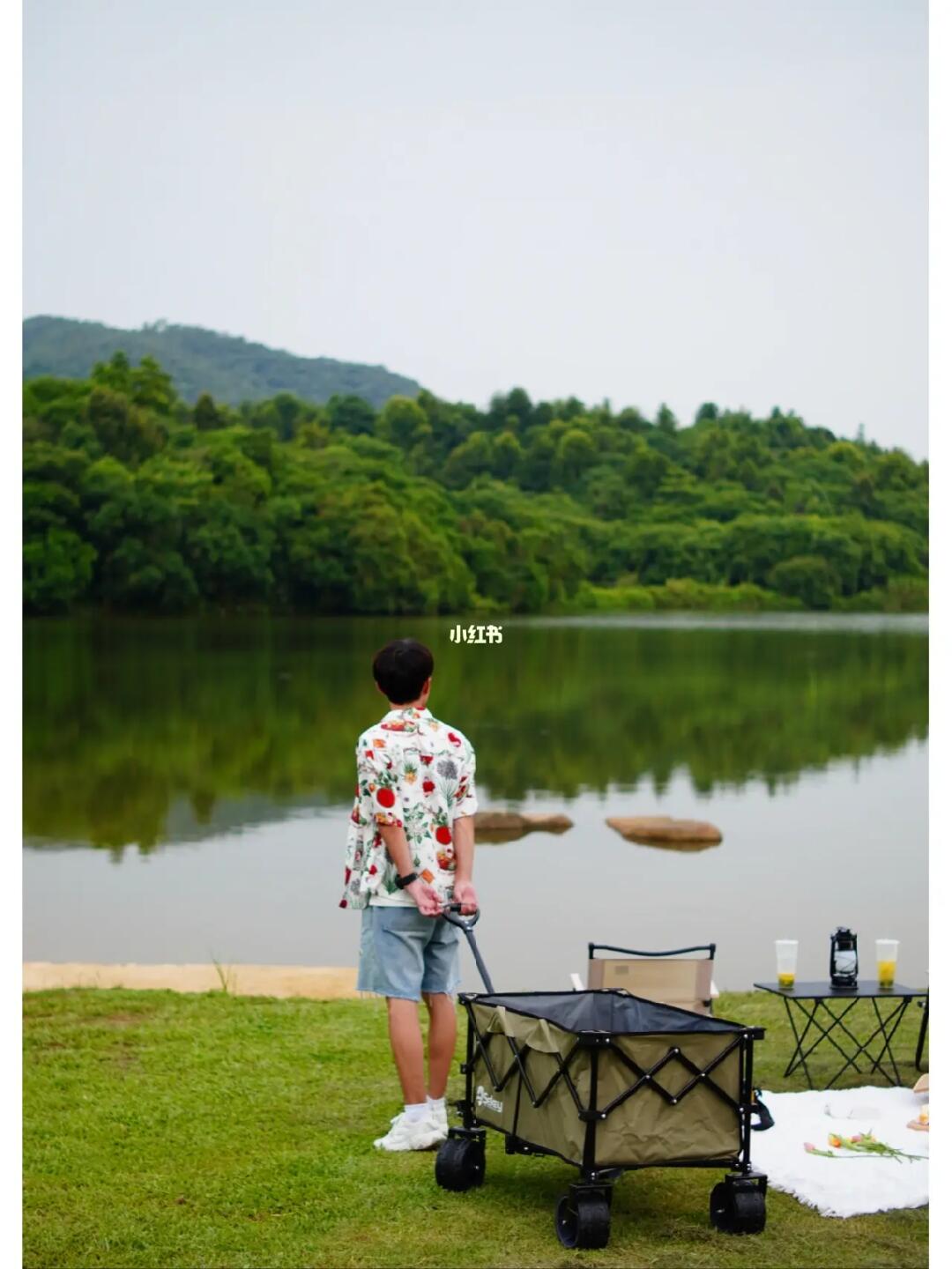 ✅真的是迷上露营了,发现简装露营是真的爽。1张野餐垫2张凳子1张桌子1个收纳盒,拉上小推车说走就走。