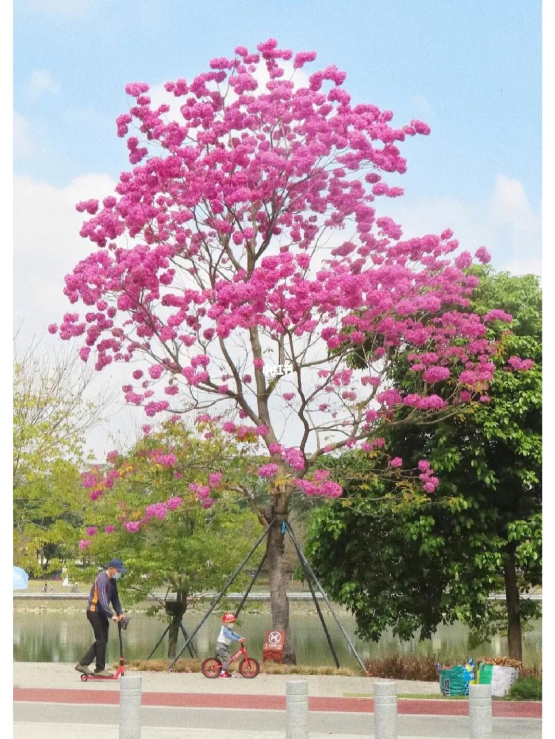 这是一个小众景点,也许是黄色风铃木看多了,觉得这里的几颗紫色风铃木真的很美,而且还能在花下面露营哦。