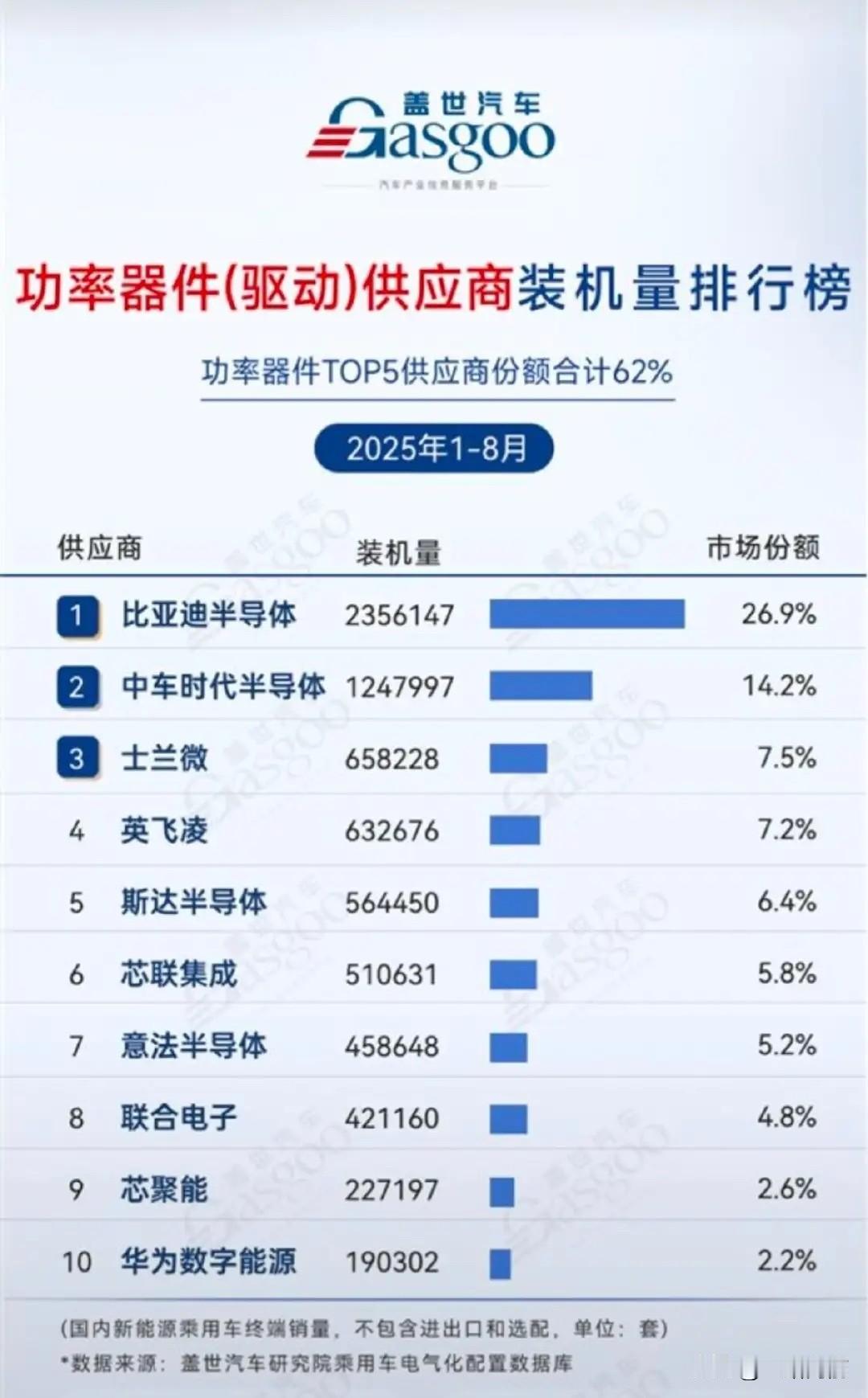 如果你以为比亚迪只是在新能源汽车领域市占率高,你就有点真的太低估它了! 其实,比亚迪的业务范围是非常广的,除了新能源汽车,比如电池,手机代工等,比亚迪还在半导体领域有绝对优势! 先说最让人意外的半导体,这可不是小打小闹。2024年全球功率半导体市场萎缩到323亿美元,比亚迪却逆势冲进全球前十,以3.1%的市占率排第七,还是前十里仅有的两家市占率上涨的企业之一。它的硬核产品一抓一大把:业内首创的1000V SiC模块,能降低30%动态损耗,直接帮新能源车提续航;还有国内首款车规级12V电池AFE芯片,把采集、保护、通信功能全集成了,既省成本又小体积。更牛的是,小鹏、长安、东风岚图这些同行都在买它的半导体,连美的、格力、三星也成了它的客户,这实力早跳出“自供”圈子了。 再看它的“基本盘”,哪块拿出来都是行业顶流。电池不用多说,作为宁德时代的老对手,比亚迪的刀片电池靠“针刺不起火”出圈,现在不仅供自家车,还给特斯拉、丰田供货。手机代工更是藏得深,咱们手上的华为、三星旗舰机,不少都是比亚迪造的,连精密的摄像头模组、充电器都能搞定,年营收早突破百亿级。 最关键的是,这些业务根本不是“各自为战”。新能源车需要的功率半导体、电池管理芯片,比亚迪自己能造;造电池剩下的技术,能用到储能电站;手机代工积累的精密制造能力,又能反哺汽车电子。这种“垂直整合”的本事,让它不管是应对芯片短缺,还是降低成本,都比别人多一手牌。 以前总有人说比亚迪“偏科”,现在看来纯属误解。从汽车到电池,从手机代工到半导体,它早把产业链的关键环节攥在了自己手里。全球车企都在愁芯片卡脖子,比亚迪却能自己造还对外卖,这格局真的不一样。