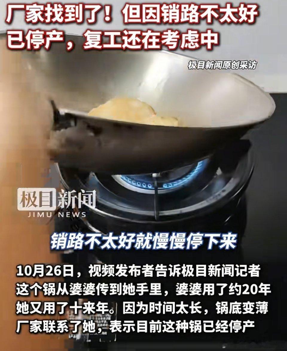 🔻铁锅用了二三十年,女子发文寻厂家想再买一个。厂家找到了,但因销路不太好已停产。