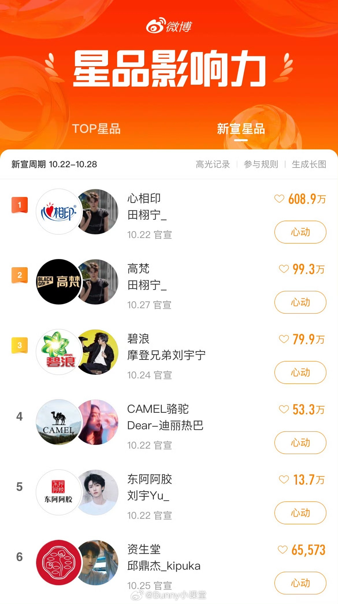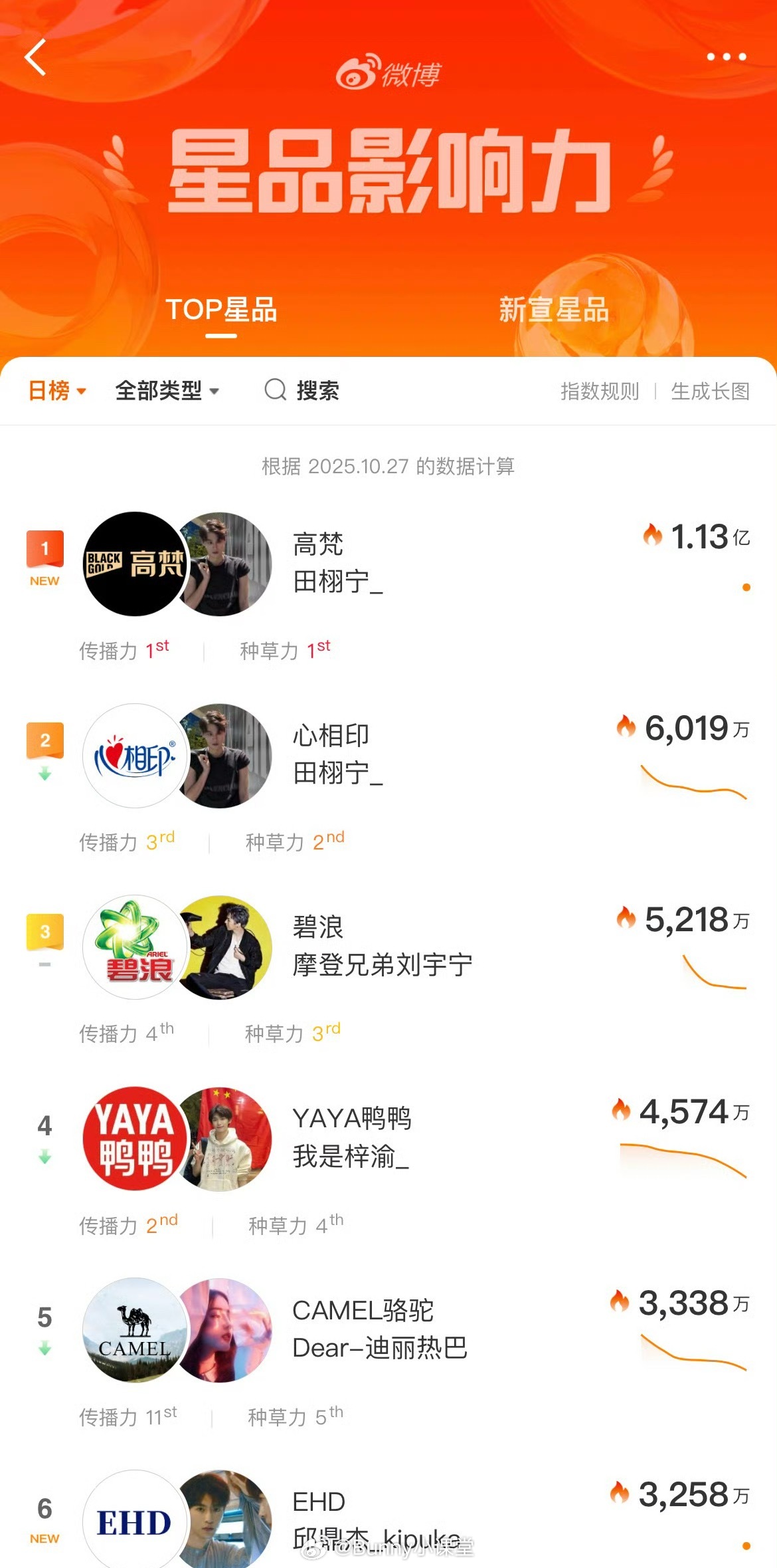星品影响力最新榜单,田栩宁、邱鼎杰上榜,x.0在内娱无人能挡了[老师好]