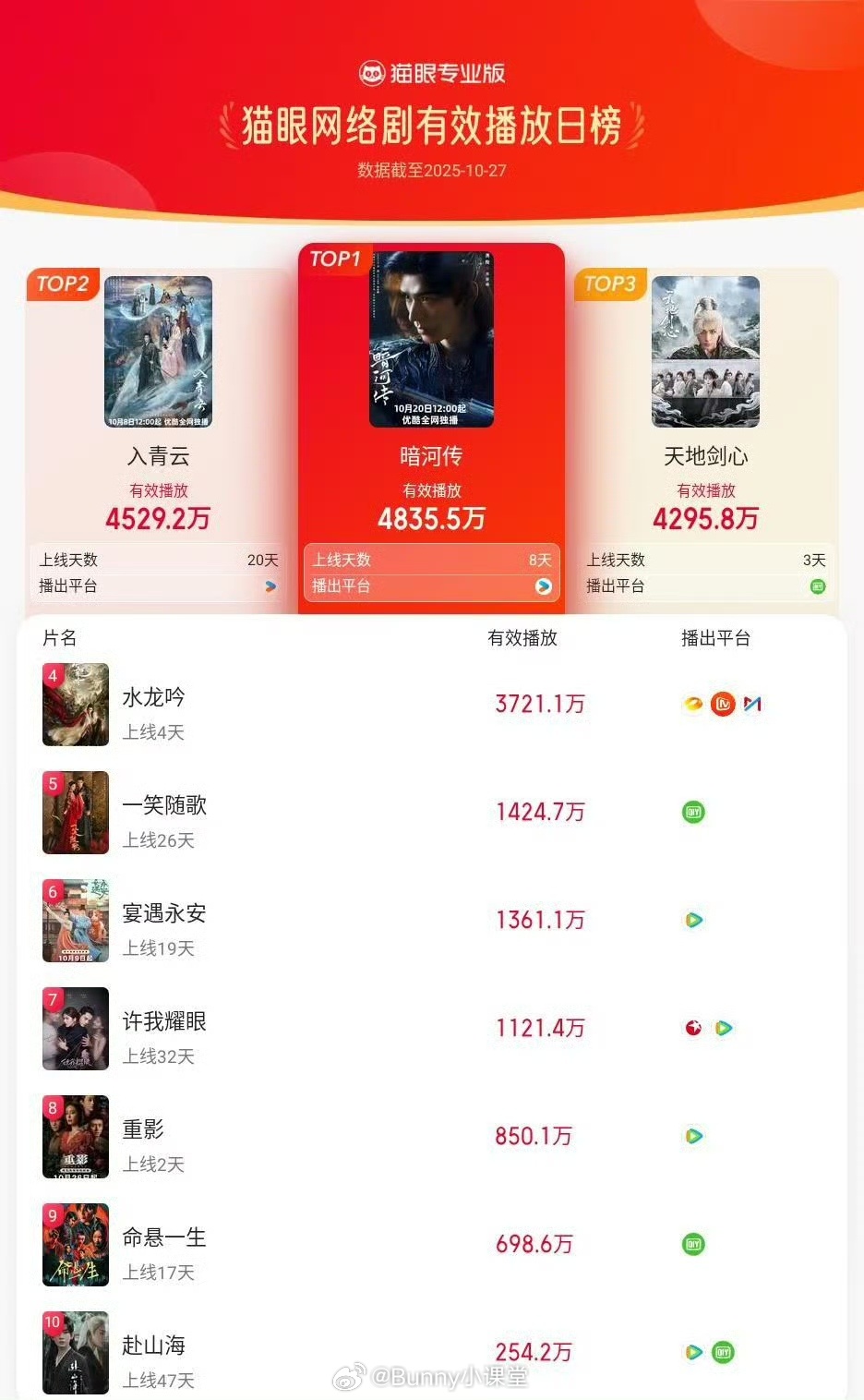 天地剑心播放量 刚刚猫眼发布了《天地剑心》有效播放量破亿。
