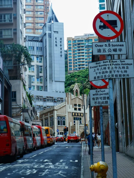 8️⃣金钟站:F口出香港警察总署,对面天桥左侧拍摄九龙北角道路,(图3)右侧拍摄联合教会香港堂(图1)
