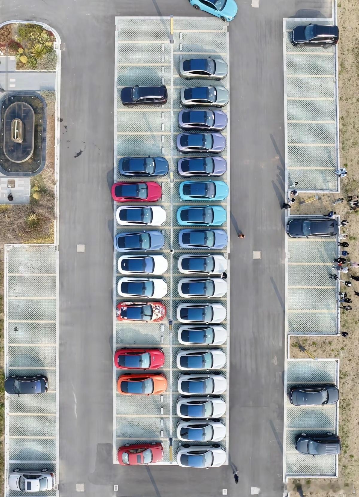 Y开车去商场吃饭,取号后需要排队很久,于是直接回到地库在车里打发时间,这时发现不远处停了一辆灰色SU7。接着一辆紫色SU7出现,转了一圈后选择和“灰米”贴贴,紧挨着停在隔壁空位。