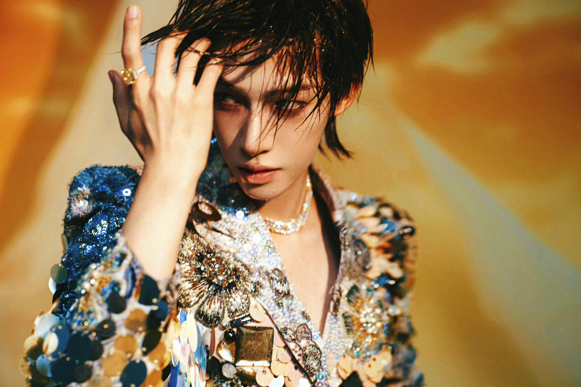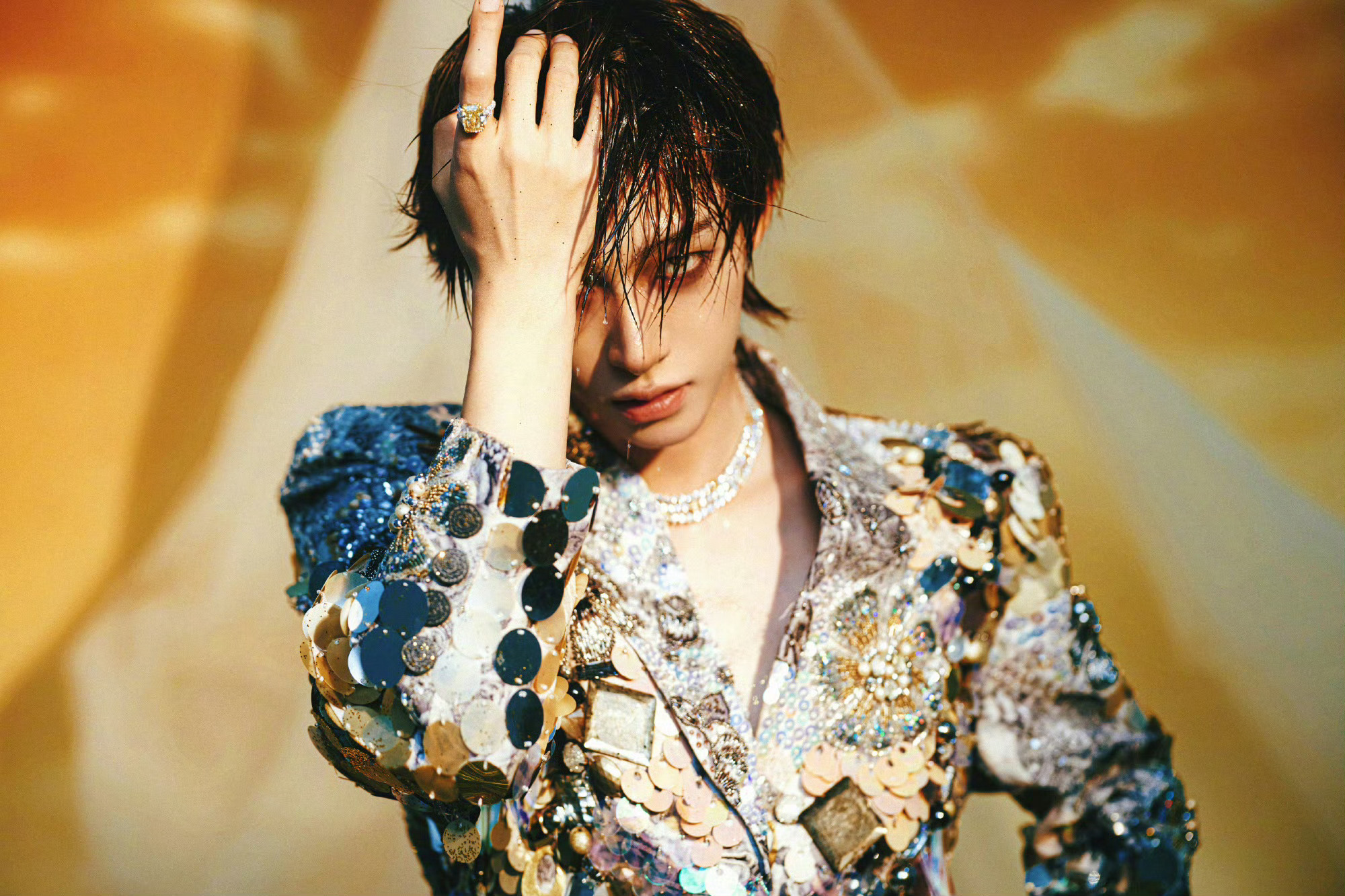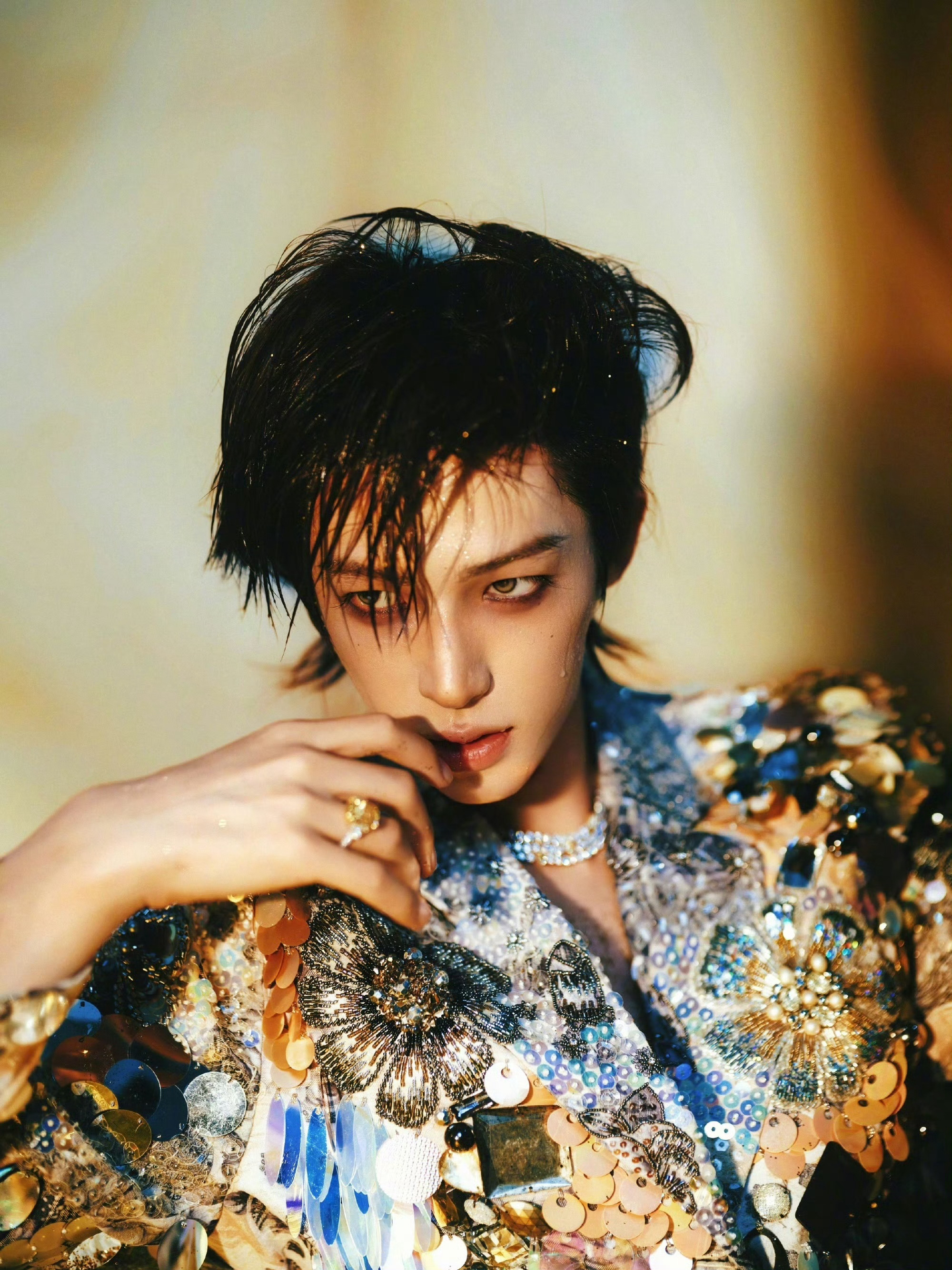 刘宇身穿Germanier2025秋冬华丽刺绣高定亮相ELLE盛典,湿发+烟熏