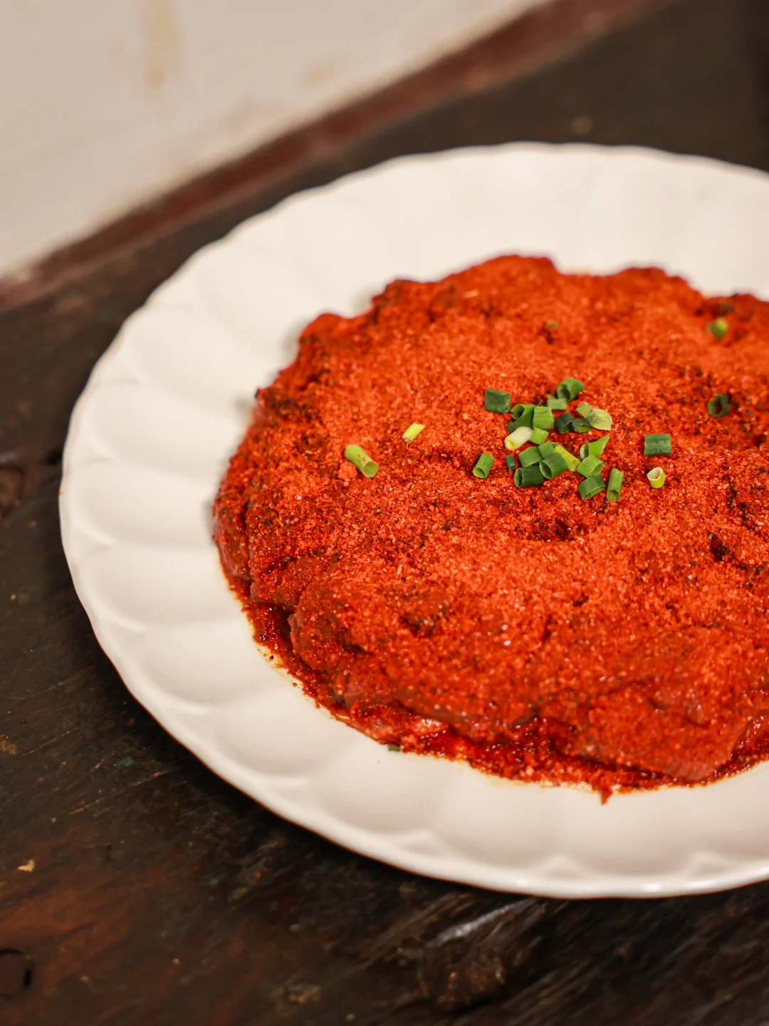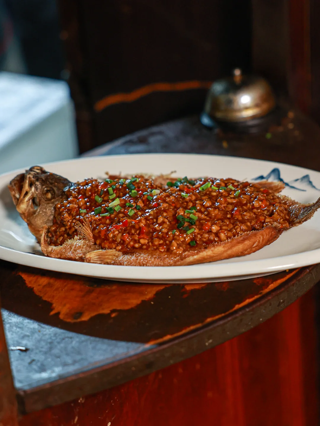 整块肉没有猪的腥气,油质部分吃起来也很通透,吃起来不会感到腻滞。腌渍和大蒜辣椒的风味彼此不抢戏,还有淡淡的烧烤香。这道菜属于既可以下饭,又可以单吃吃个不停的口味菜。