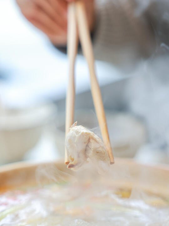 先喝汤会有较重的药膳味,尾调再带点木瓜的水果清甜。等食材涮完了再喝汤,药味淡了,鸡的鲜味会相对突出一些。