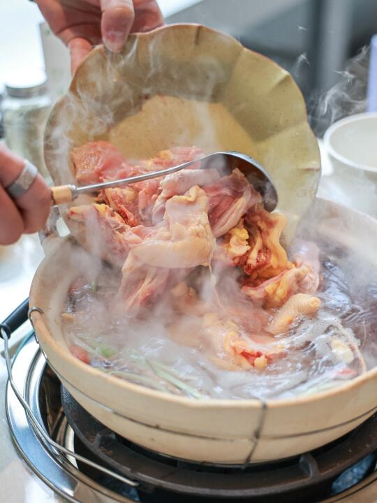 鸡都是从清远运来的走地鸡,煮熟之后肉质紧实有鸡味,而且大块的黄色鸡皮脆弹在线,冬天在寒冷的长沙就着鸡肉喝鸡汤,属实养胃;