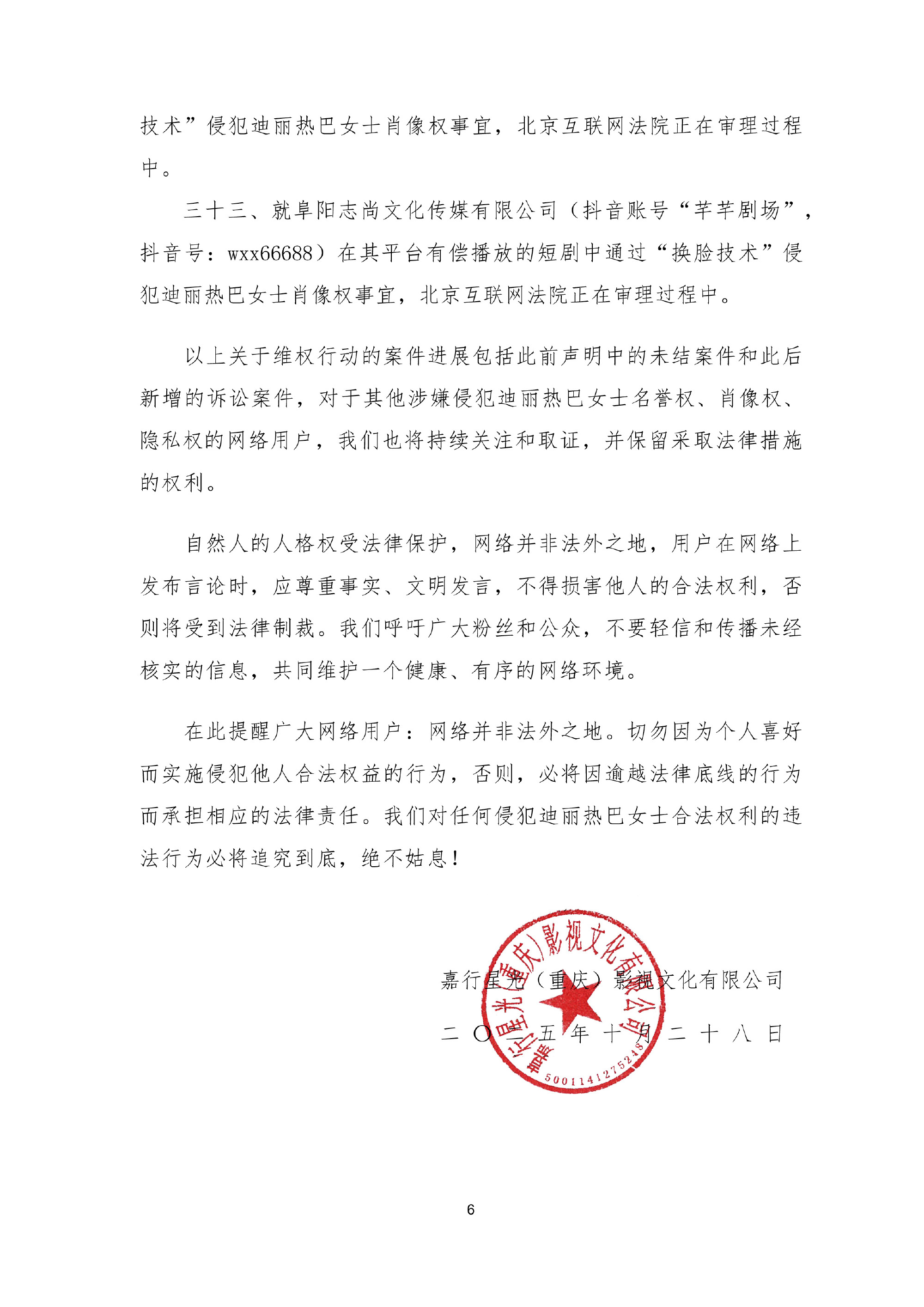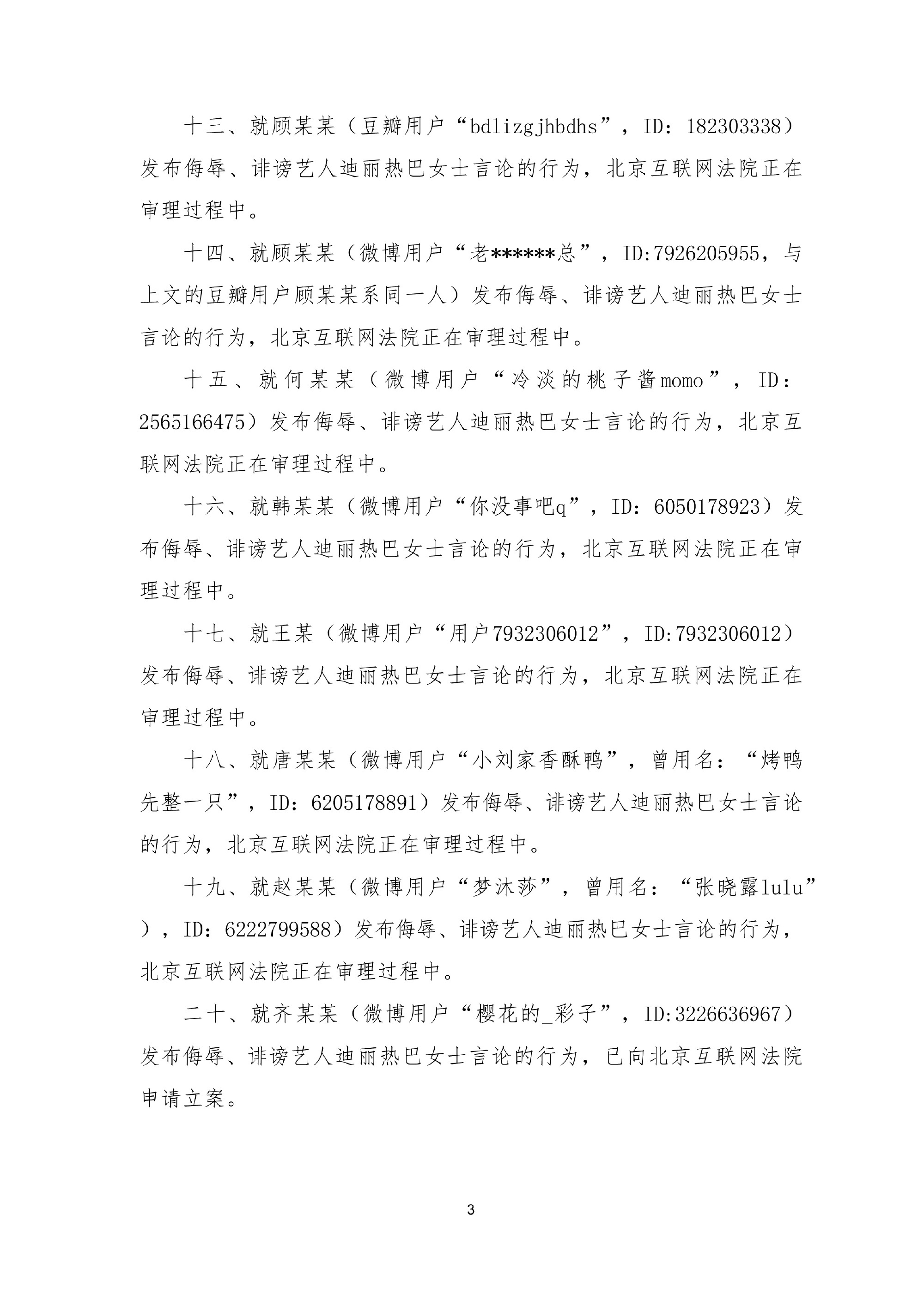 迪丽热巴工作室发布最新告嘿声明网络不是法外之地支持维权