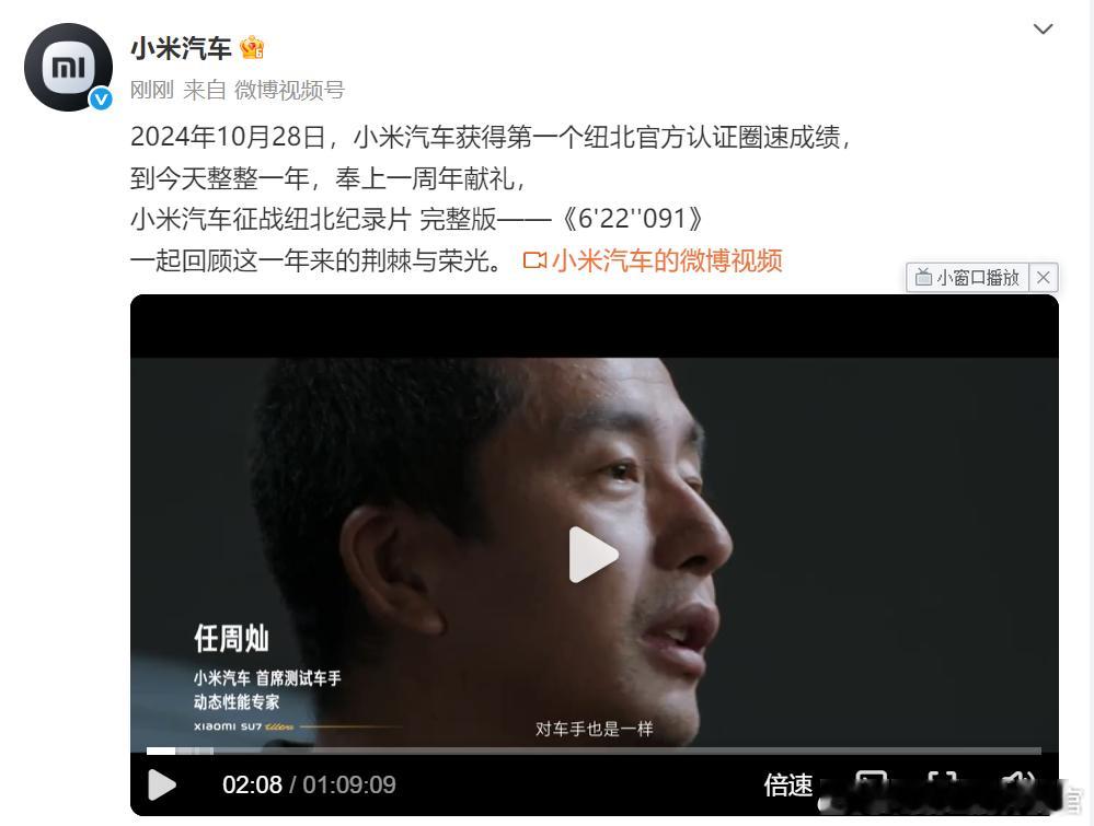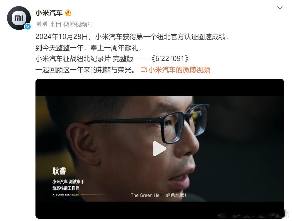 距离小米SU7 Ultra 原型车征战纽北圈速已经过去一年了,小米汽车专门做了个纪录片,时长超过1个小时,揭露了很多风光背后故事。