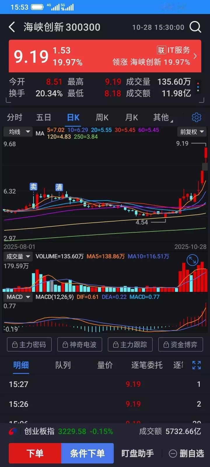 曾经的垃圾股,去年最低跌到0.96元,才一年多时间,现在乌鸡变凤凰了,一下子这么猛了,太让我伤心了,最低价的时候,我持有十多万股,最低价割肉止损了,过了3万,才一年多时间,算起来翻了10倍了,而且上涨还止不住,曾经无数人说我持有这个是垃圾股,但是垃圾股才是真正的能够赚大钱的股票,一直不甘心,4块多最终全部清仓了,不想,没有多久,又让我后悔不已,竟然9块多了,价值就变了这么多了吗,股票的真正价值到底在哪里呀。业绩一直亏损,股价却不断创新高,翻了一倍又一倍,实在看不懂呀。