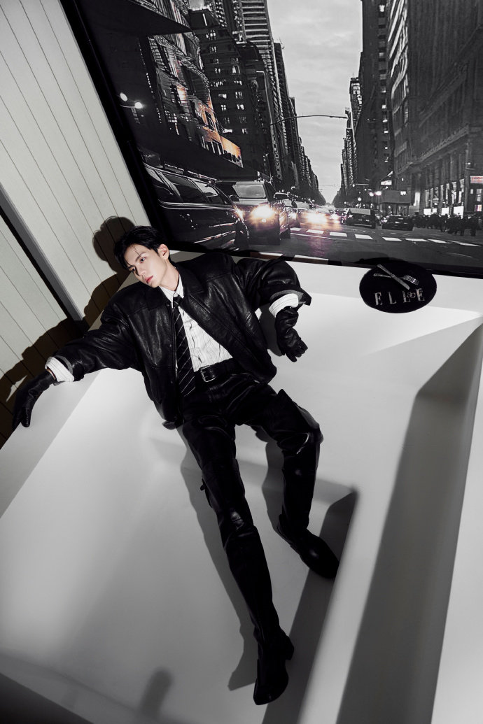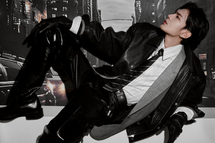 毕雯珺男模身材建模脸 毕雯珺ELLE盛典湿发皮衣A感造型